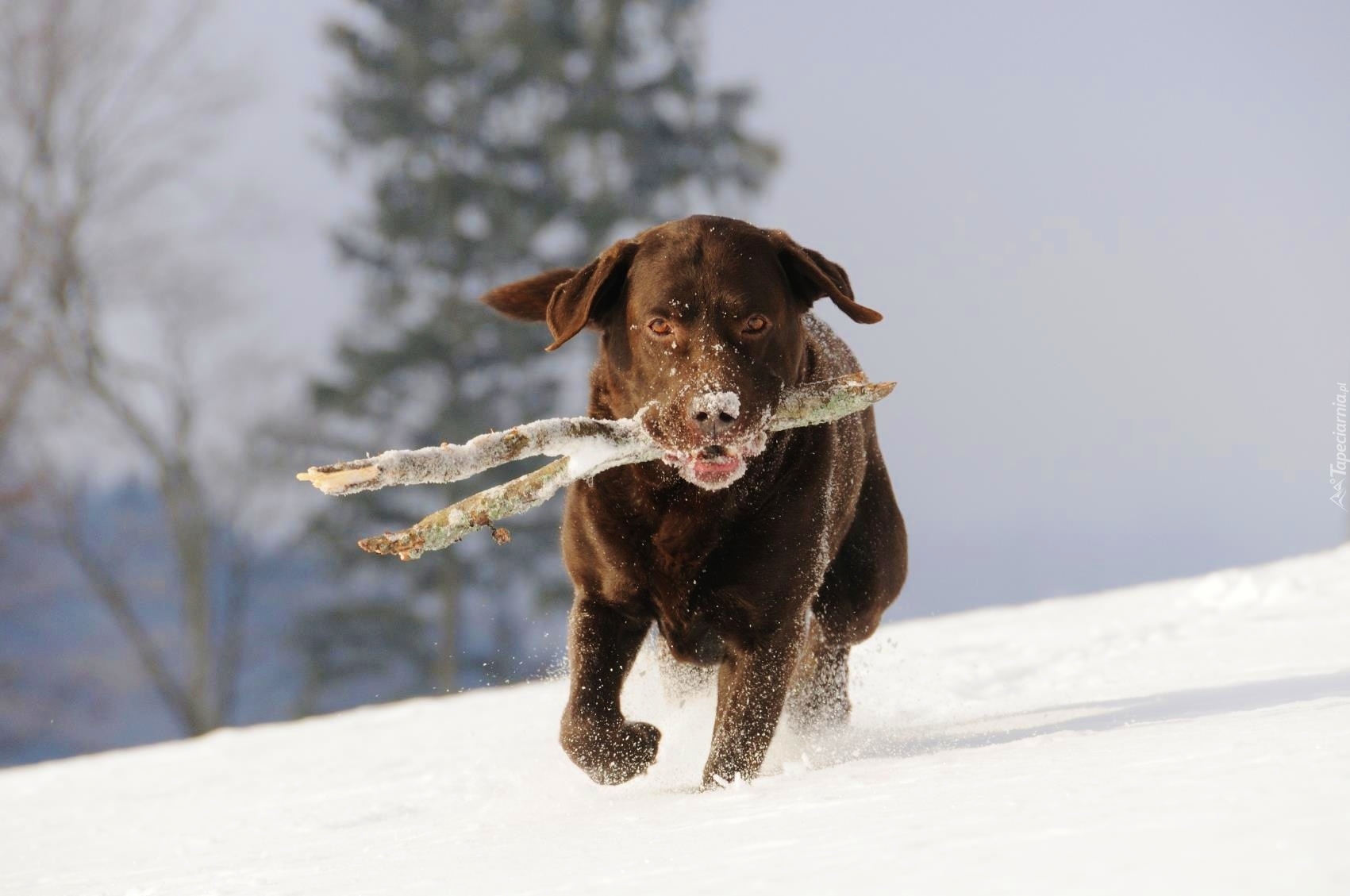 Edytor tapety: Pies, Kij, Aport, Śnieg