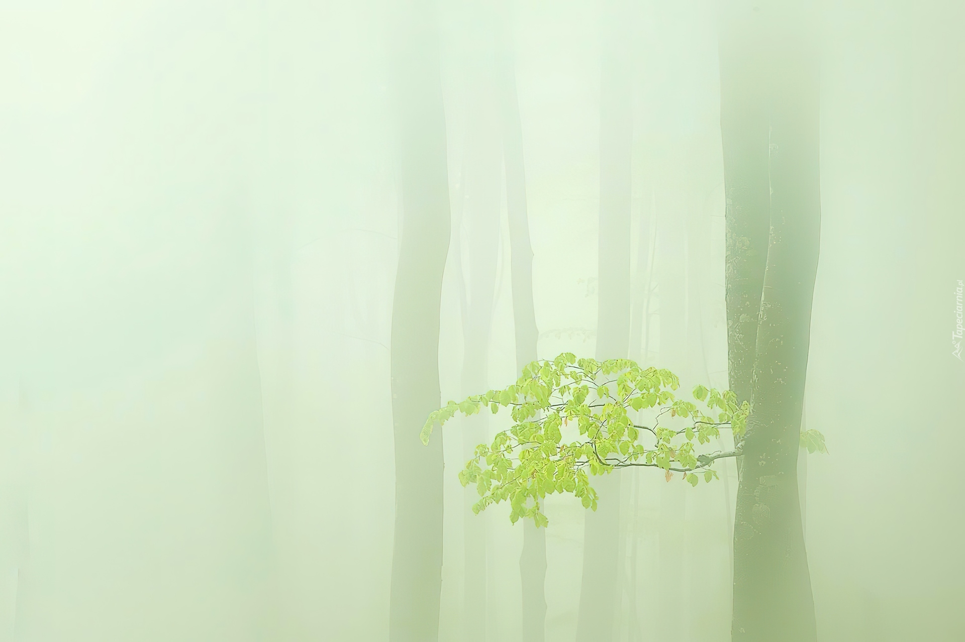 Edytor tapety: Liście, Gałązka, Mgła, Pnie