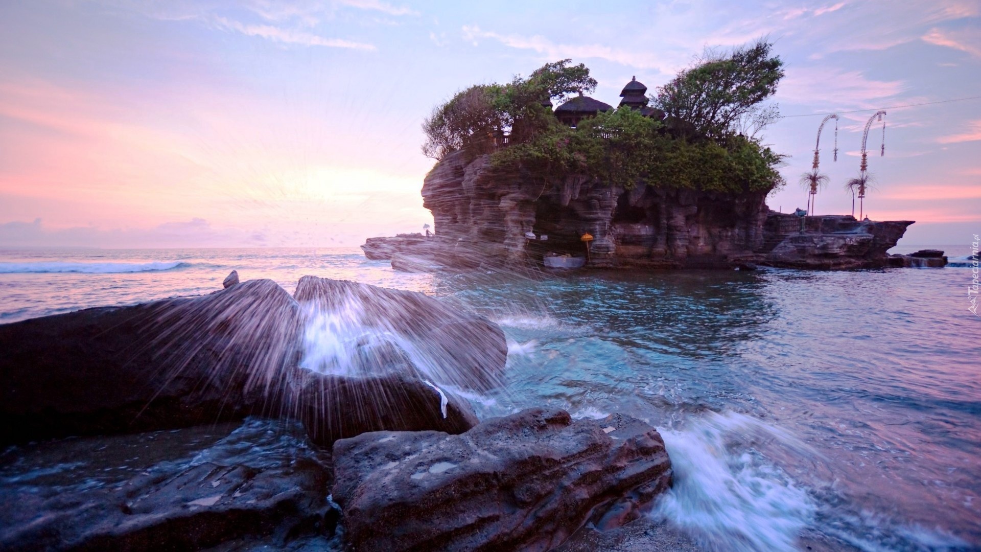 Edytor tapety: Świątynia, Tanah Lot, Morze, Skały, Bali, Indonezja