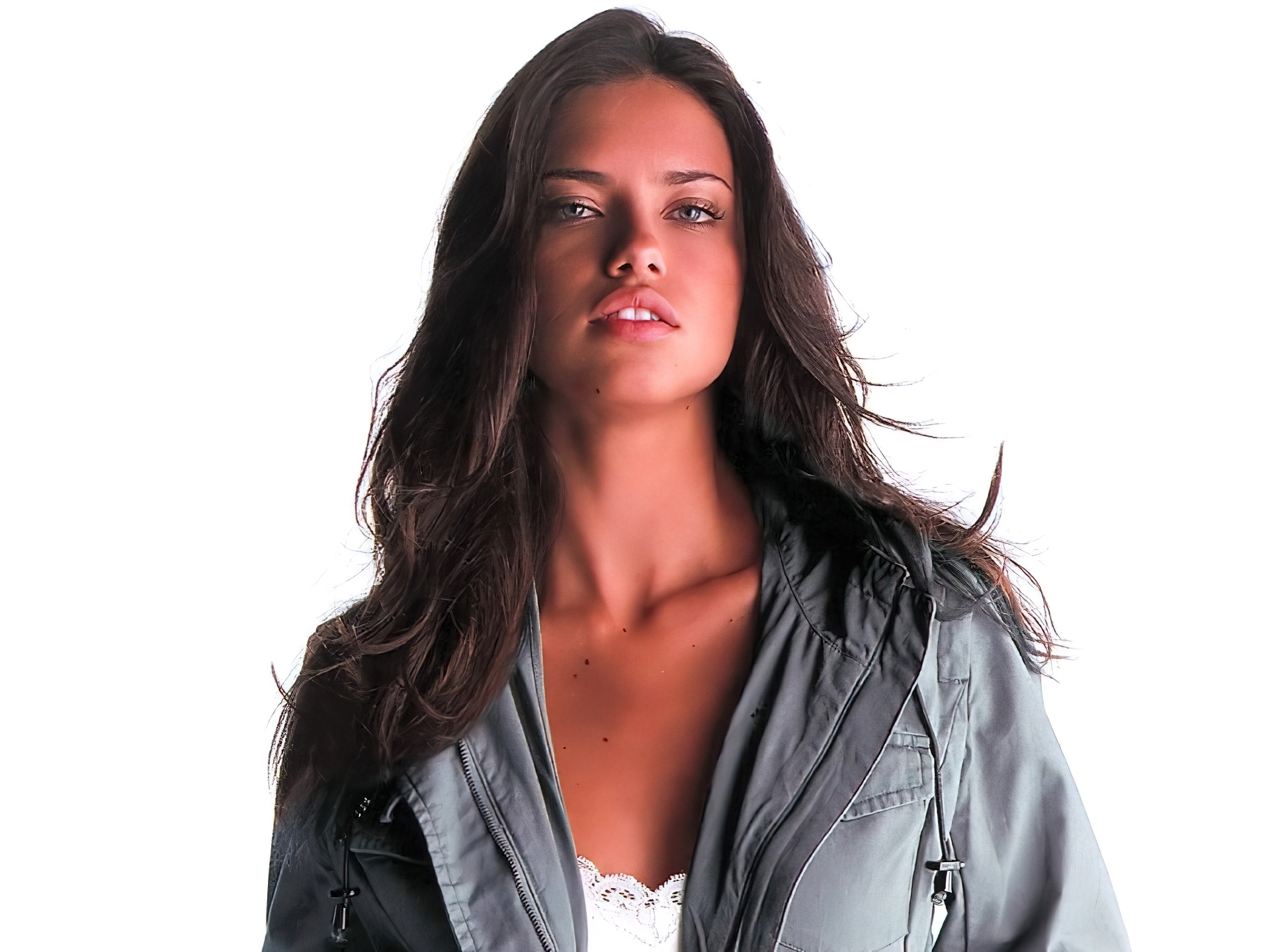 Edytor tapety: Adriana Lima, szara bluza, biały top