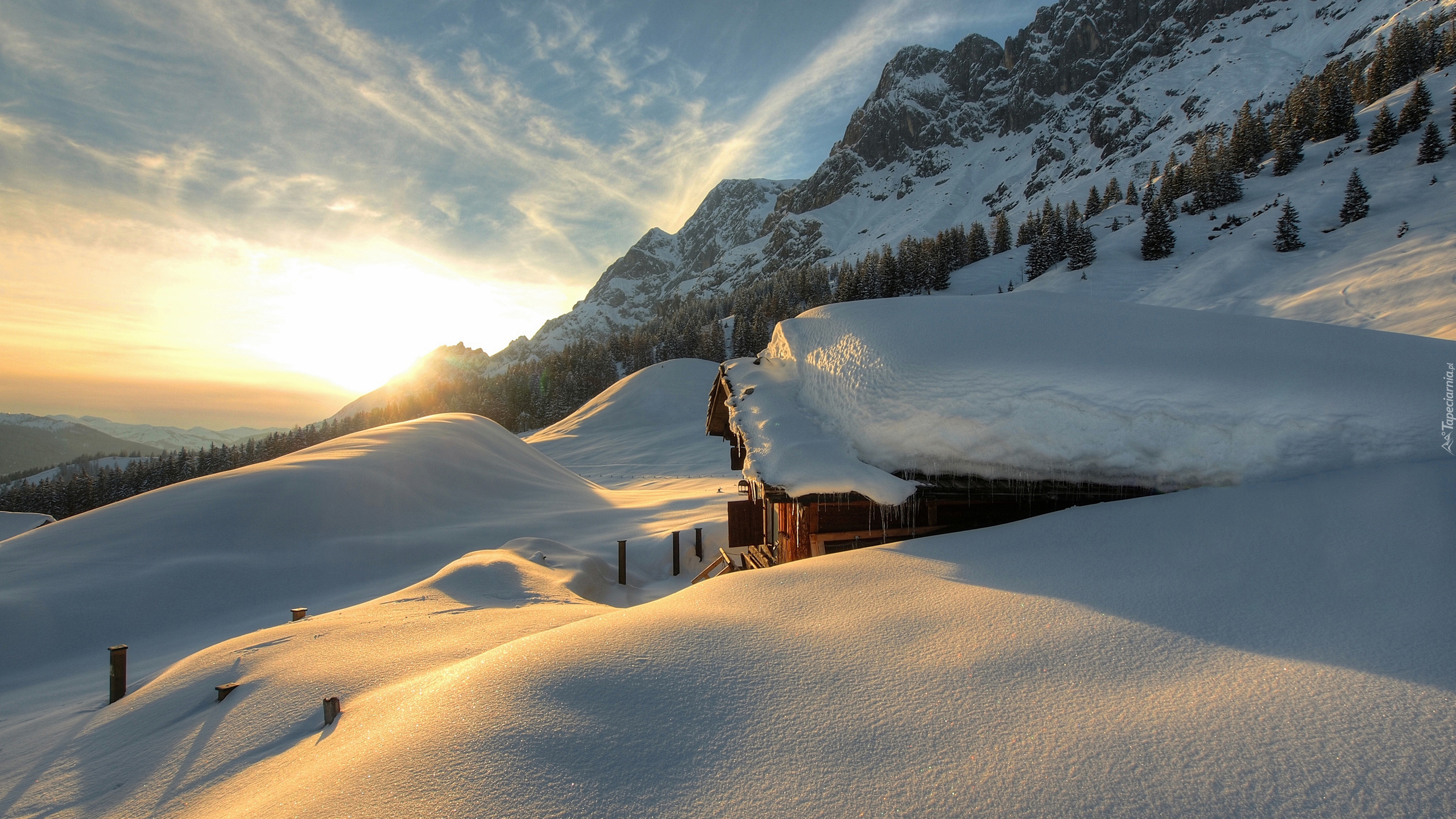 Edytor tapety: Zima, Góry, Dom, Zaśnieżony, Dach
