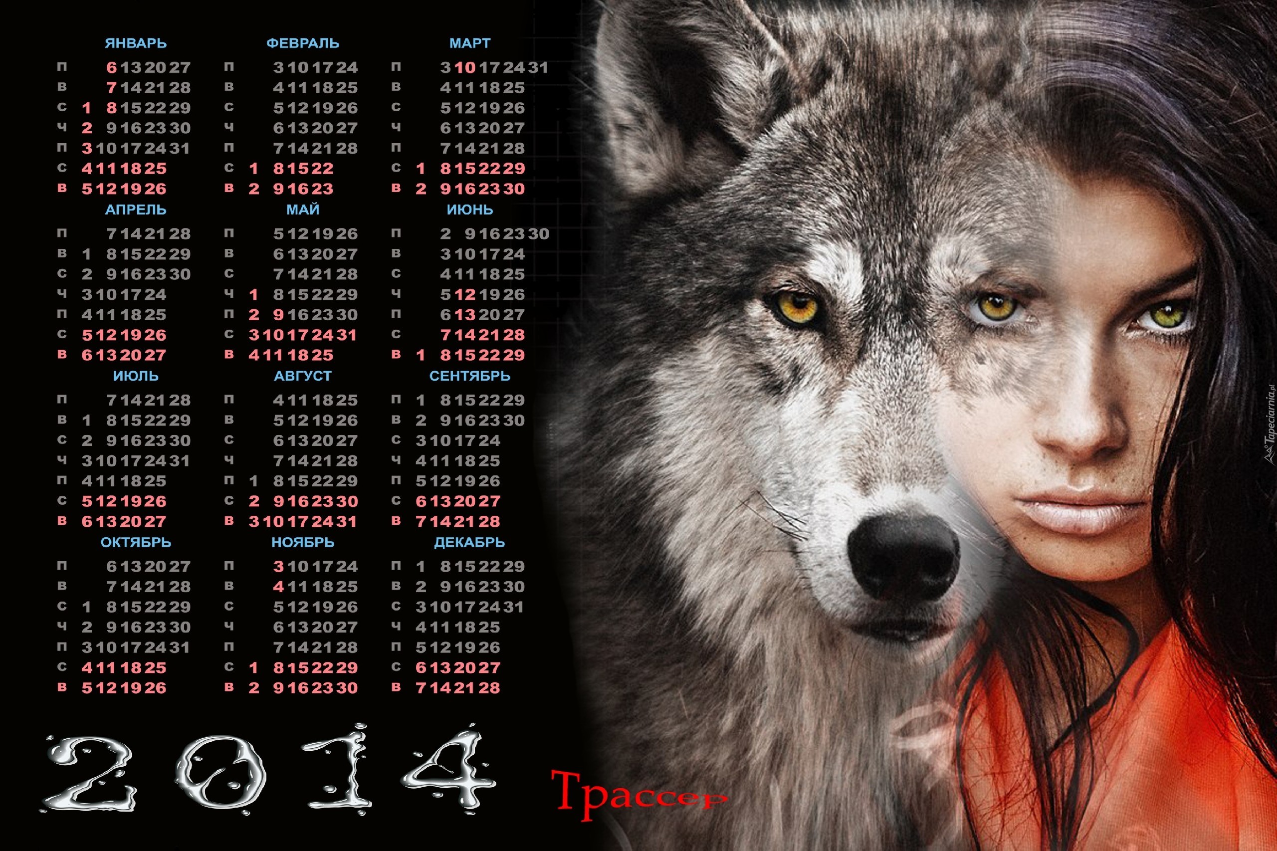 Edytor tapety: Kalendarz, 2014, Głowa, Psa, Twarz, kobiety