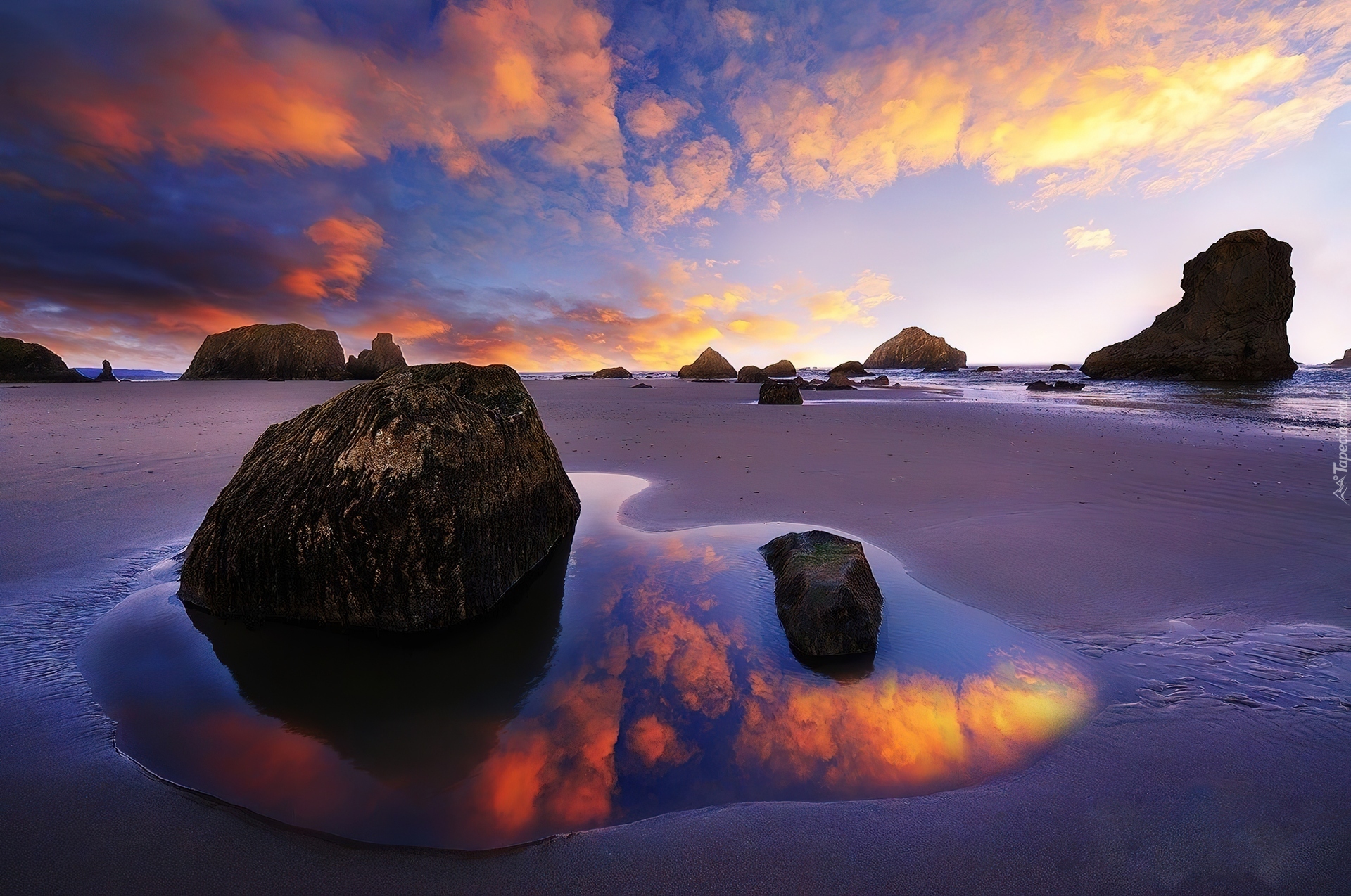 Edytor tapety: Zachód, Słońca, Skały, Odbicie