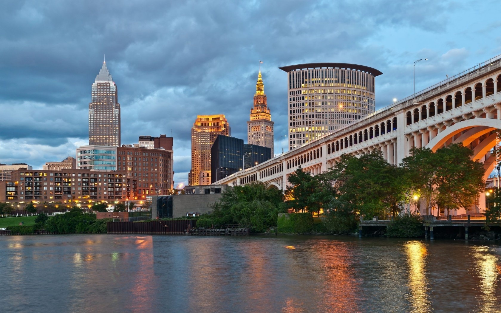 Edytor tapety: Stany Zjednoczone, Cleveland, Miasto, Most, Rzeka