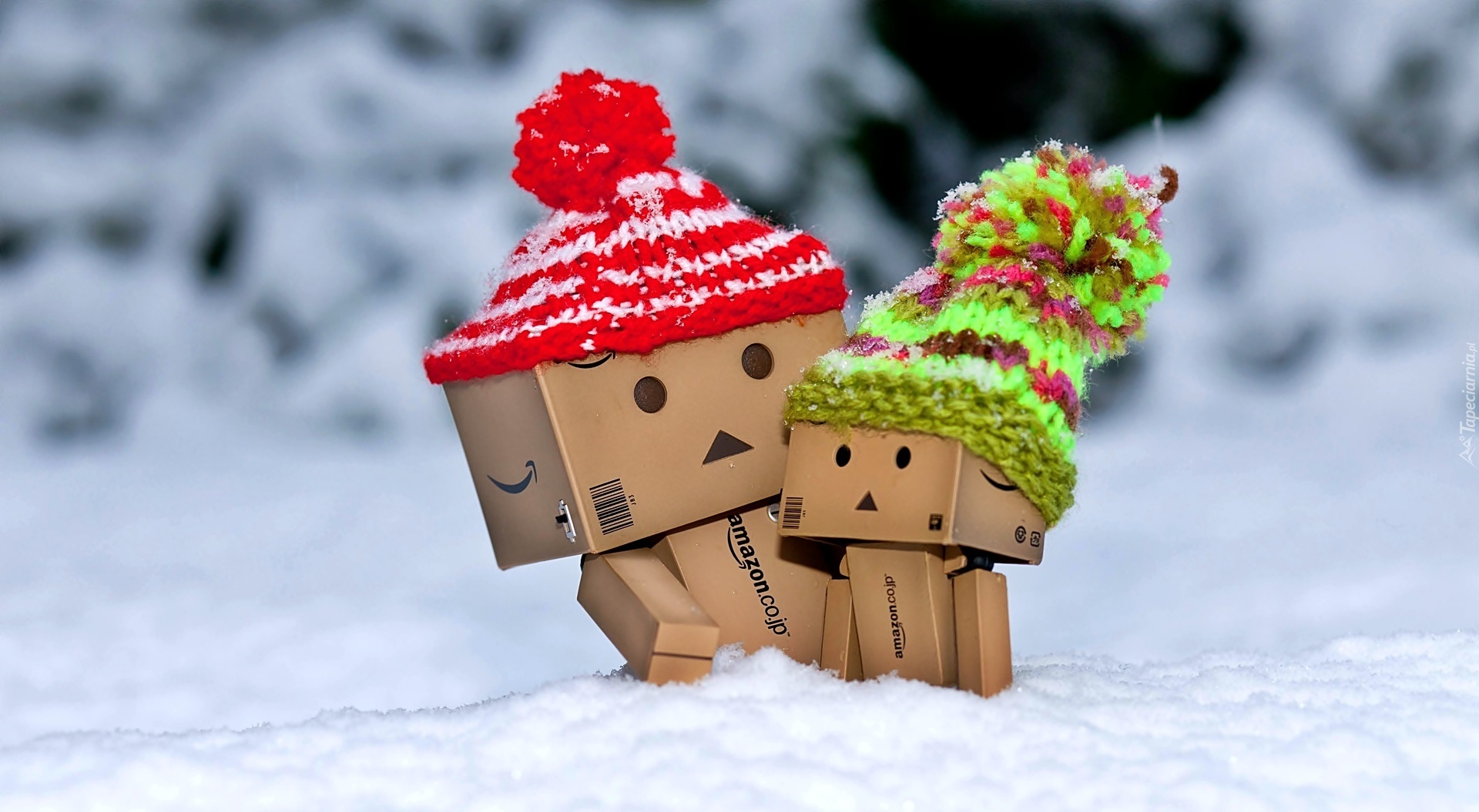 Edytor tapety: Zima, Śnieg, Danbo, Włóczkowe, Czapki