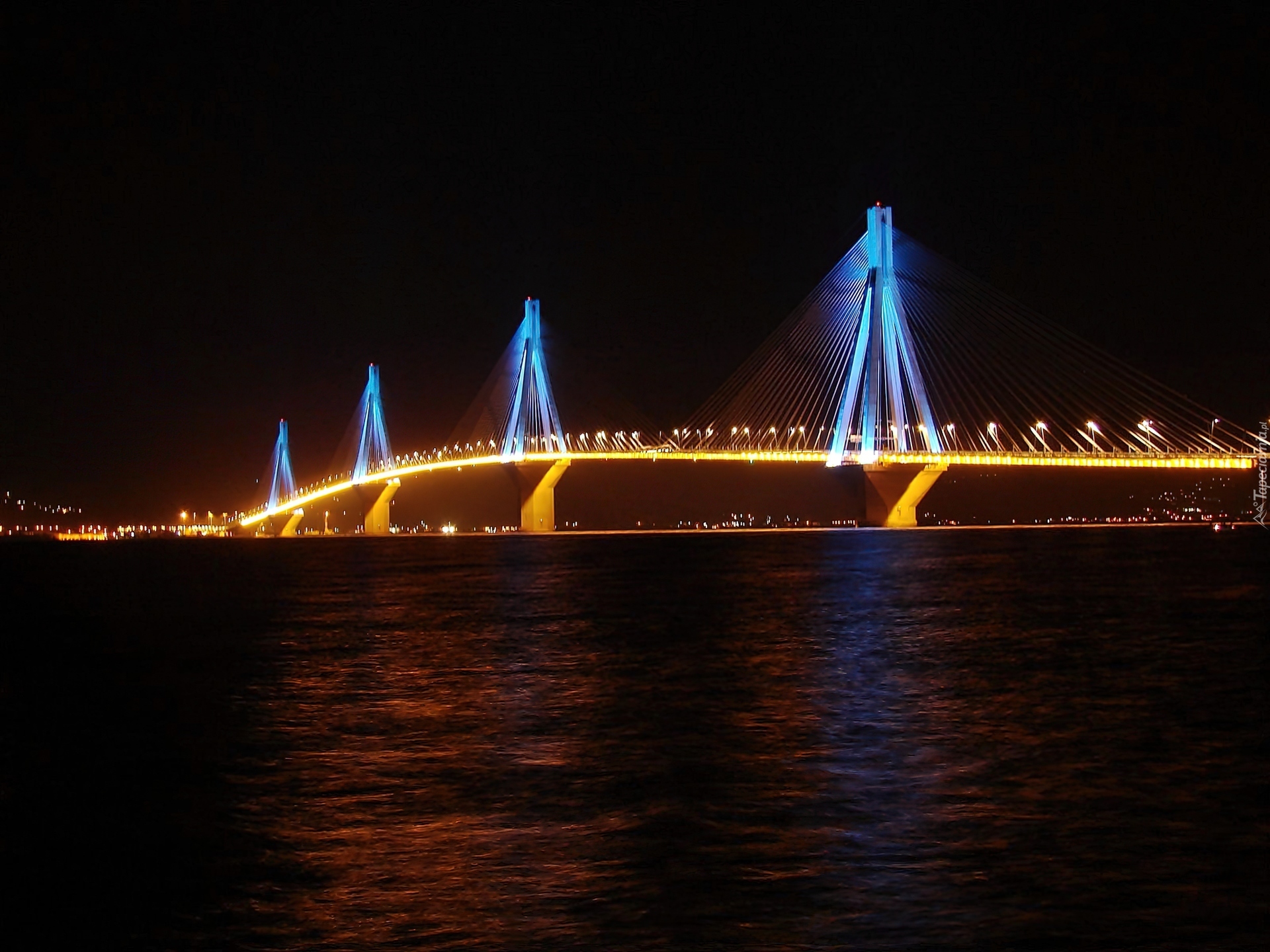 Edytor tapety: Morze, Cieśnina, Riońska, Most, Rio, Antirio, Noc