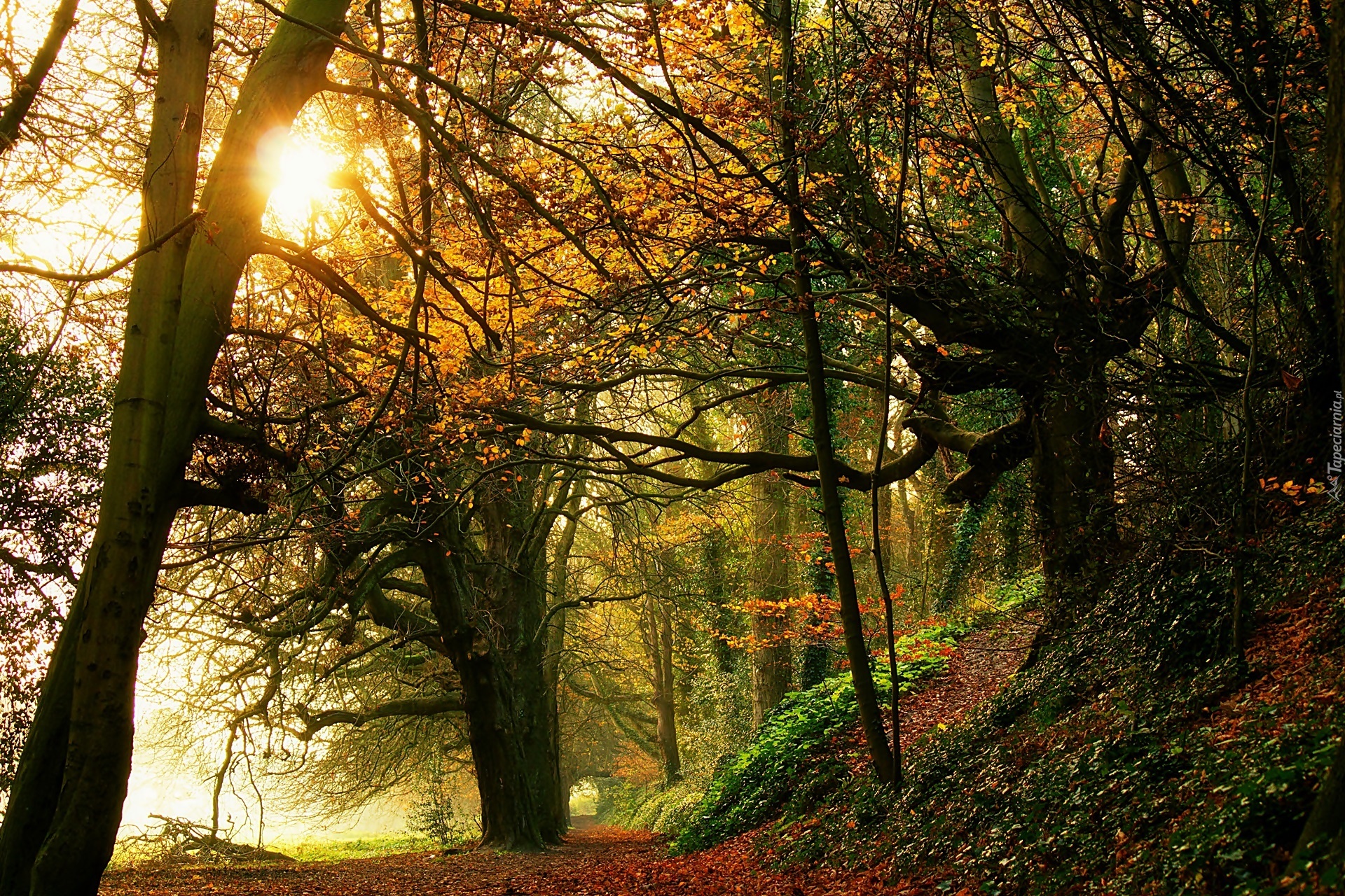 Edytor tapety: Jesień, Las, Promienie, Słońca