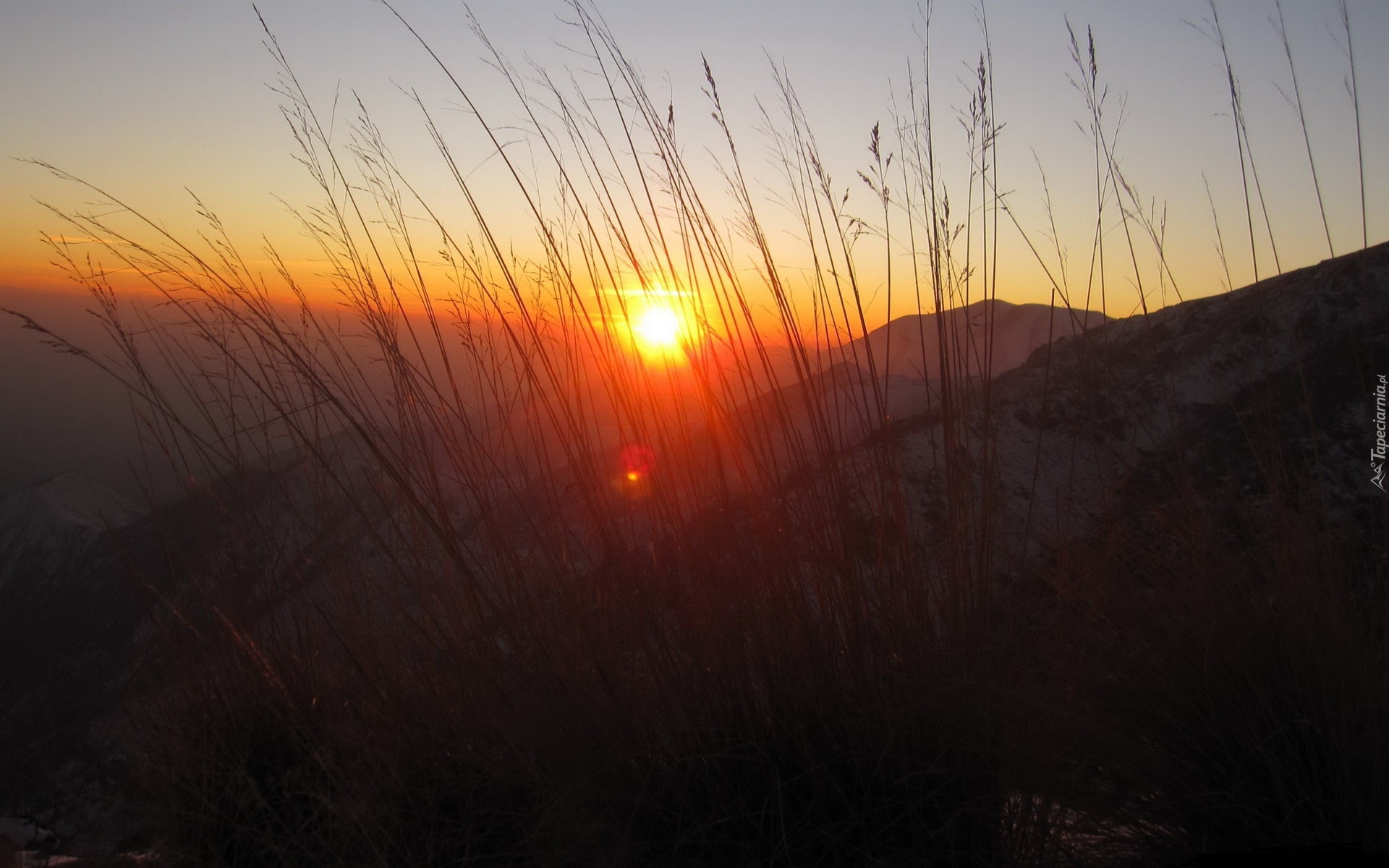 Edytor tapety: Góry, Zachód Słońca, Trawa