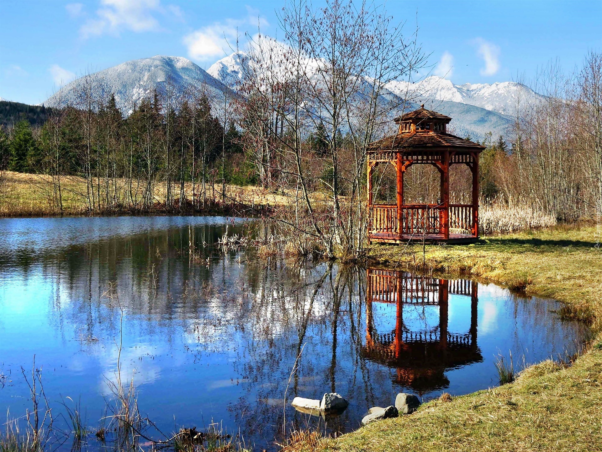 Edytor tapety: Góry, Las, Jezioro, Altanka, Odbicie