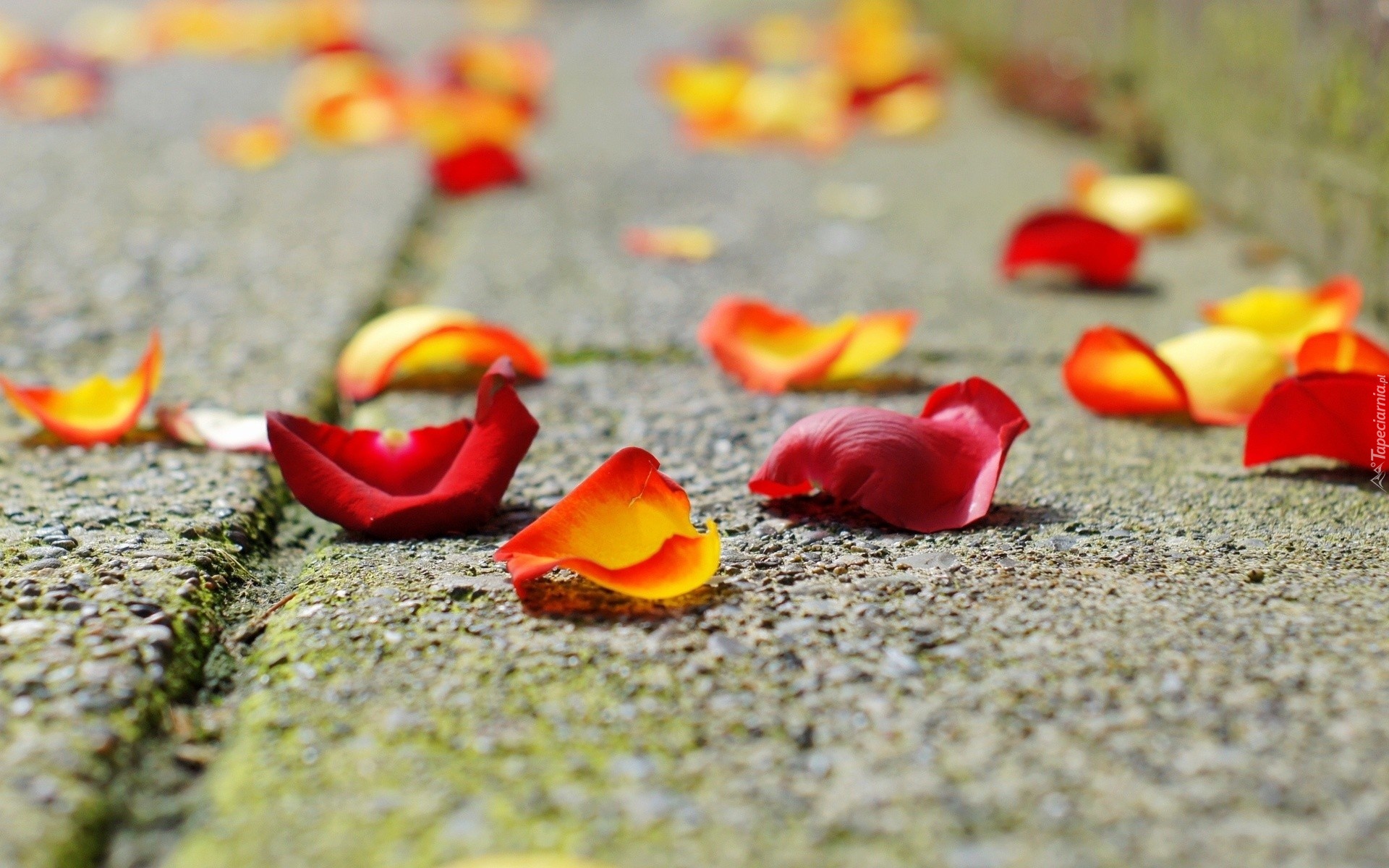 Edytor tapety: Droga, Asfalt, Płatki, Róż