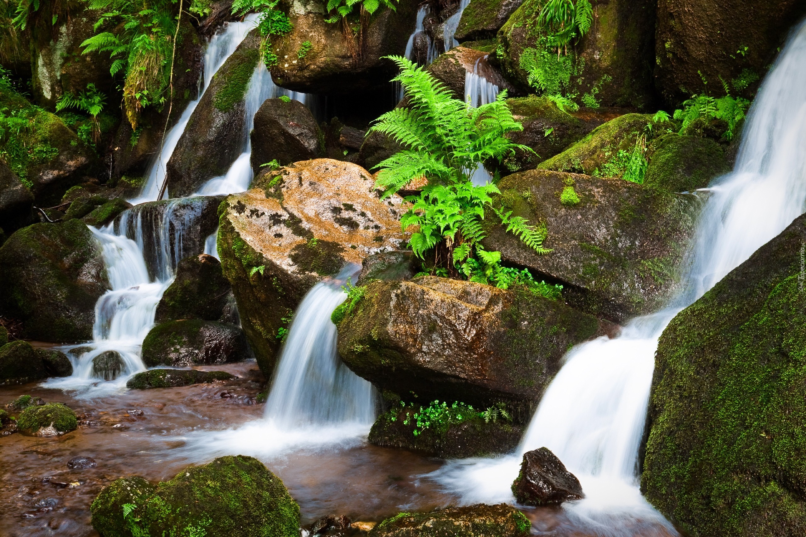 Edytor tapety: Wodospad, Kamienie, Paprocie, Mchy