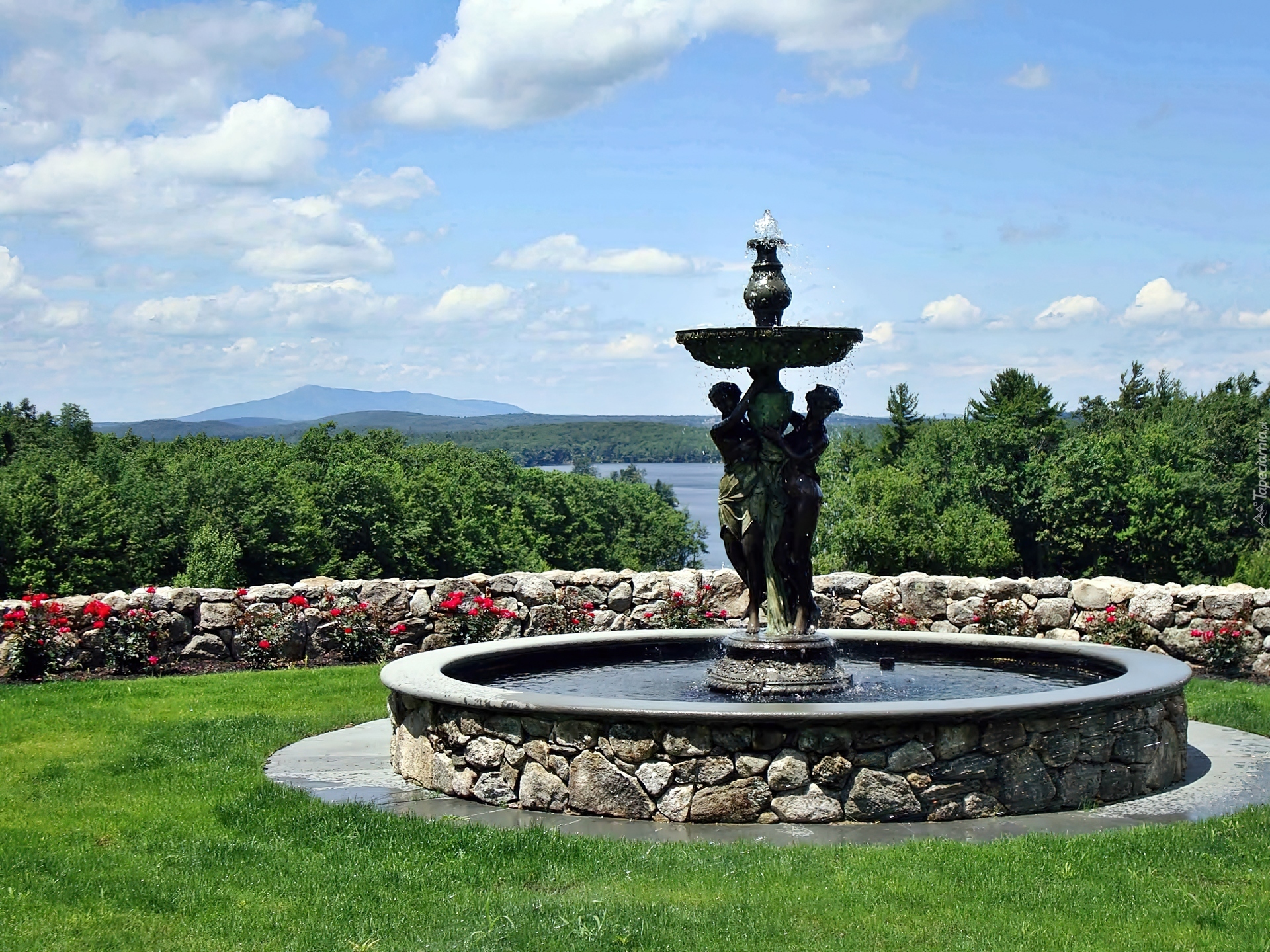 Edytor tapety: Góry, Lasy, Jezioro, Park, Fontanna
