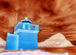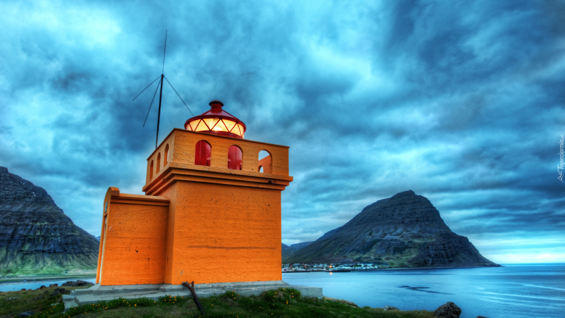 Edytor tapety: Latarnia, Morska, Łąka, Góry, Morze, Ciemne, Chmury