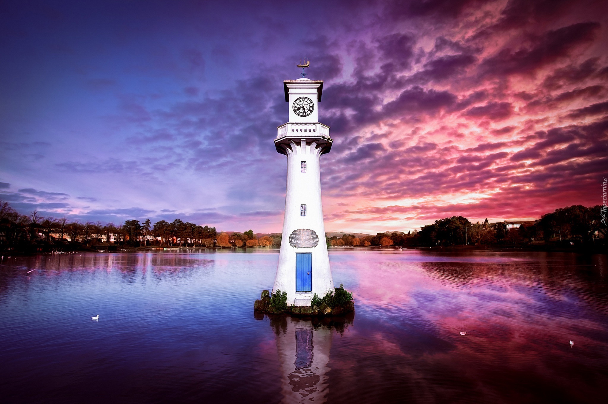 Edytor tapety: Walia, Cardiff, Woda, Zegar, Wieża, Drzewa