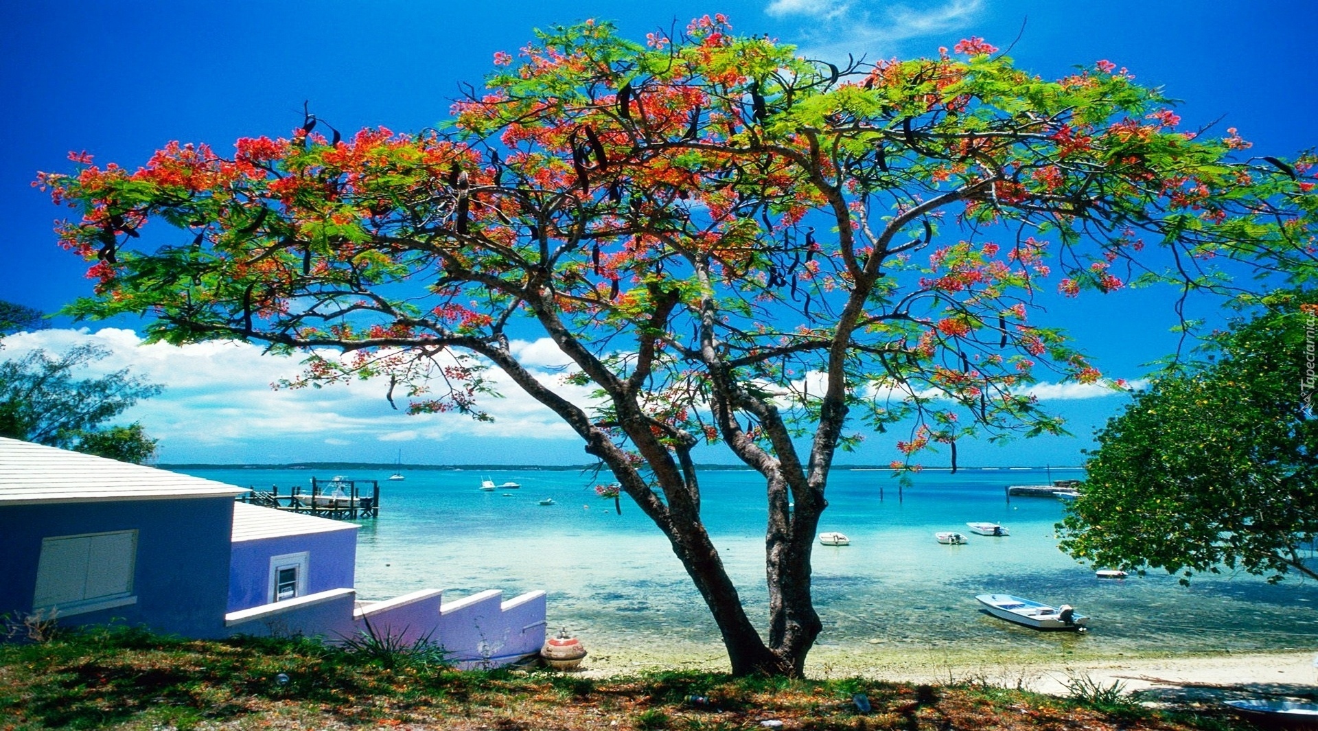 Edytor tapety: Morze, Plaża, Kwitnące, Drzewo, Karaiby