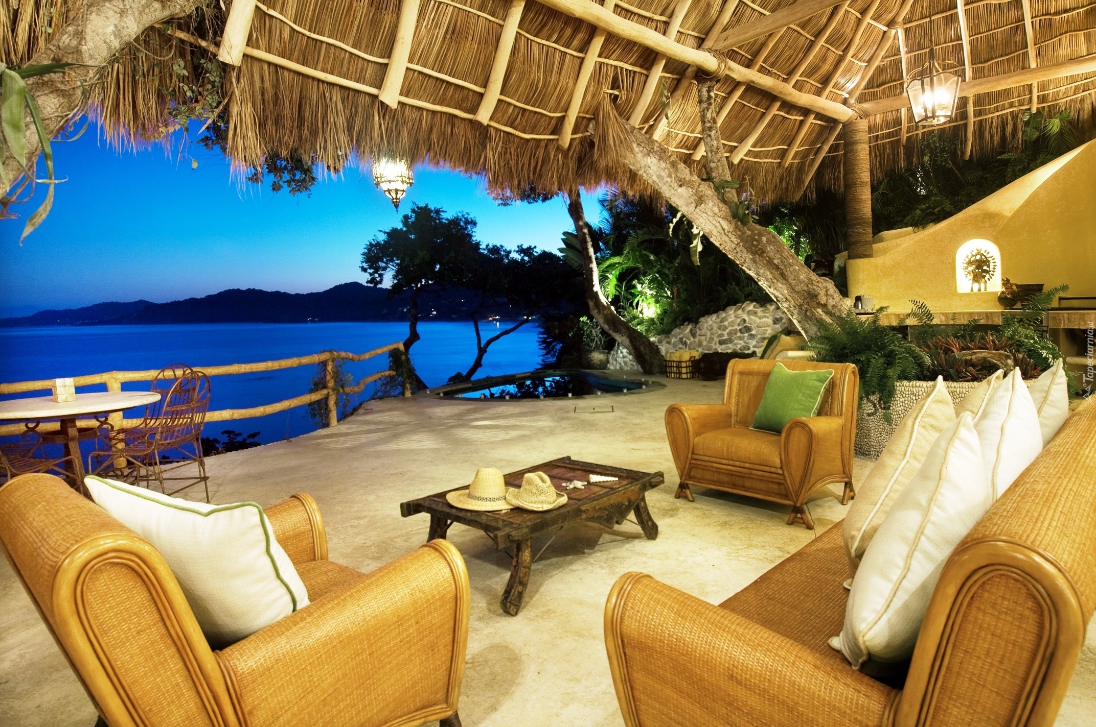 Edytor tapety: Dom, Taras, Meble, Morze, Karaiby