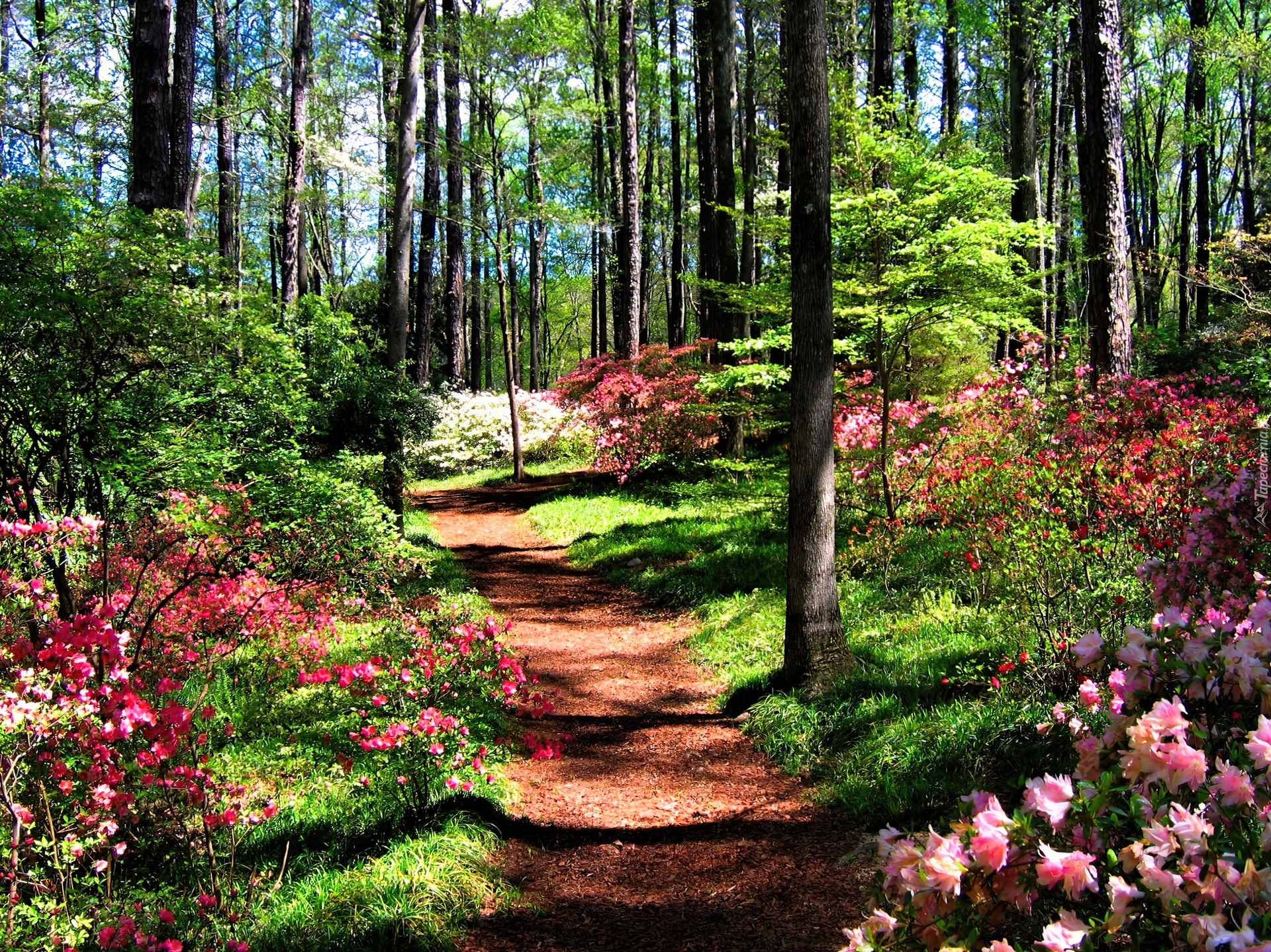 Edytor tapety: Las, Ścieżka, Kwiatki