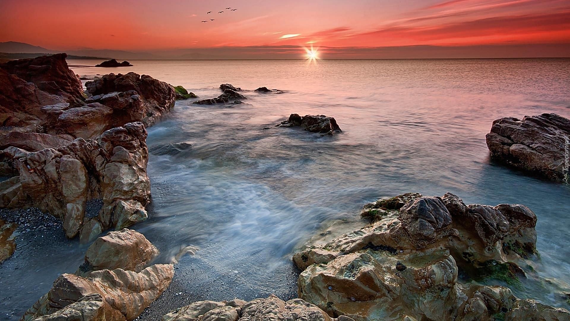 Edytor tapety: Morze, Zachód, Słońca, Skały