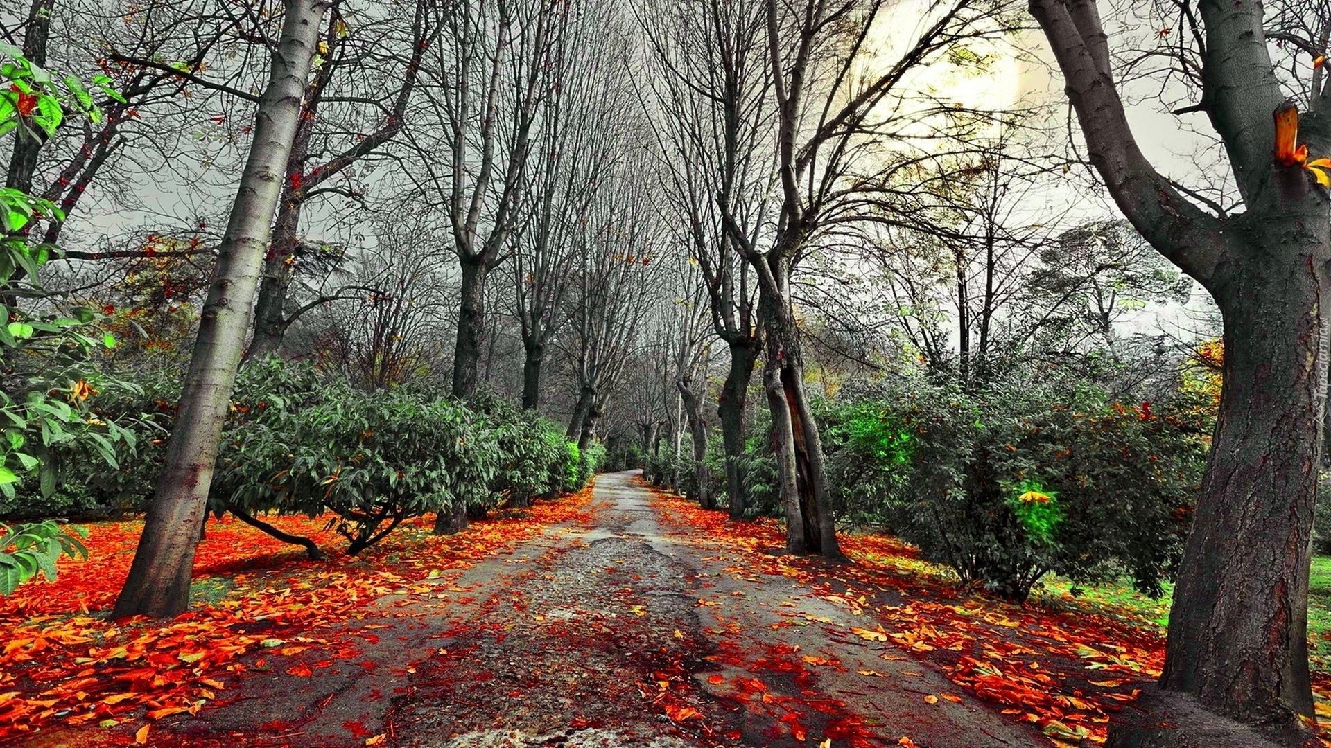 Edytor tapety: Droga, Jesień, Liście, Drzewa