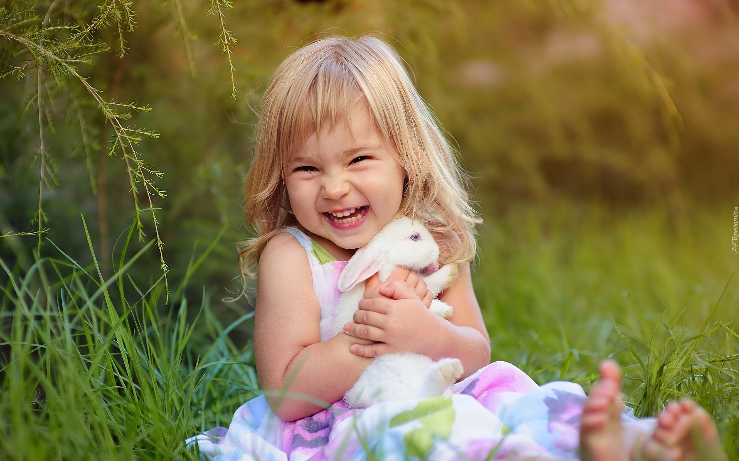 Edytor tapety: Radosna, Dziewczynka, Królik, Łąka