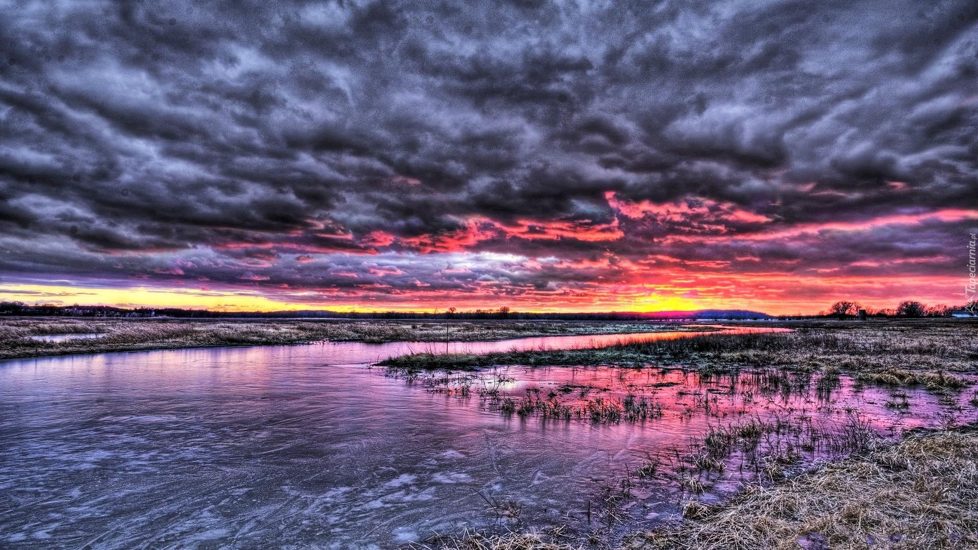 Edytor tapety: Zachód, Słońca, Chmury, Rzeka