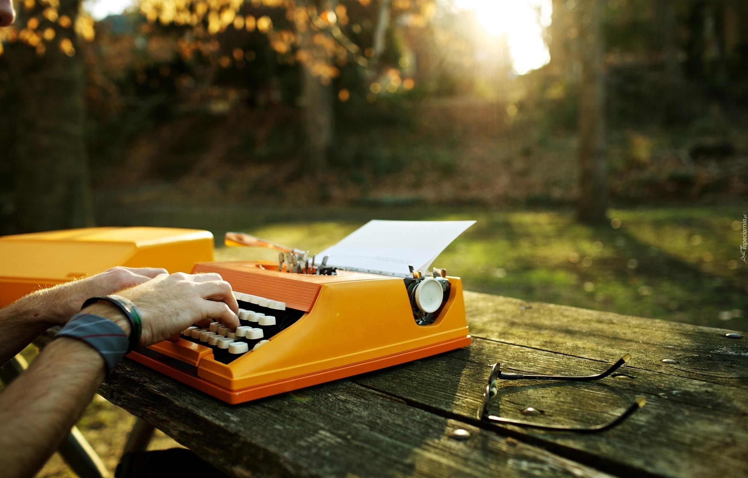 Edytor tapety: Mężczyzna, Ręce, Maszyna, Do, Pisania, Okulary