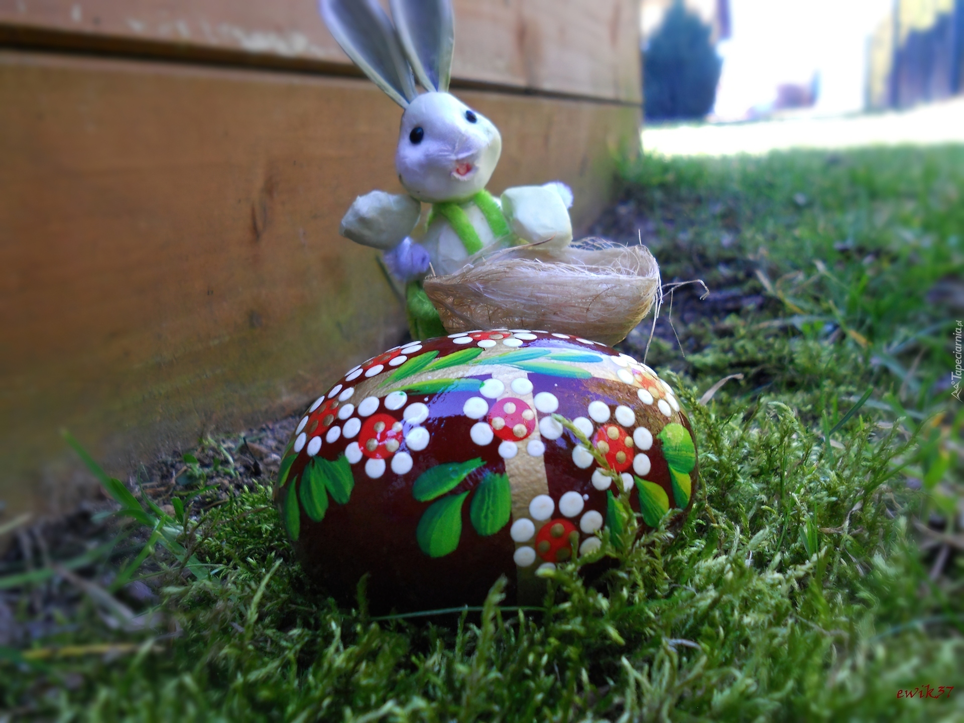 Edytor tapety: Wielkanoc, Wesoły, Zając, Jajko, Mech