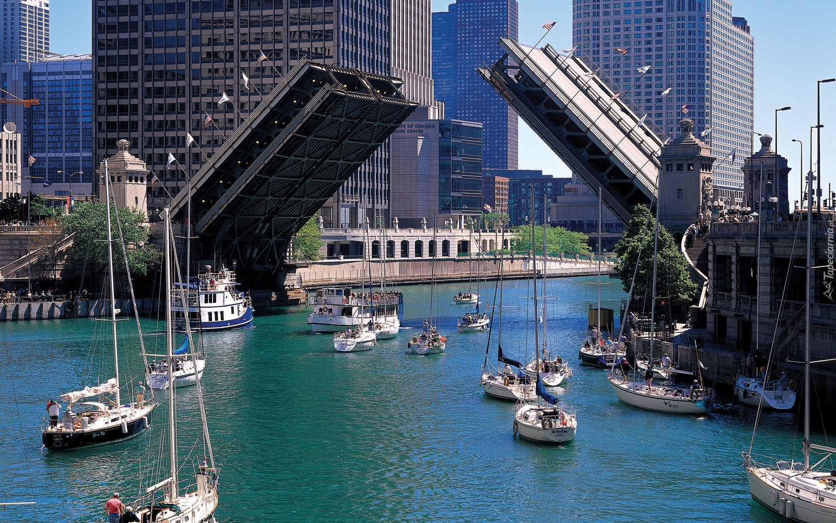 Edytor tapety: Stany Zjednoczone, Chicago, Most, Zwodzony, Łódki, Jachty