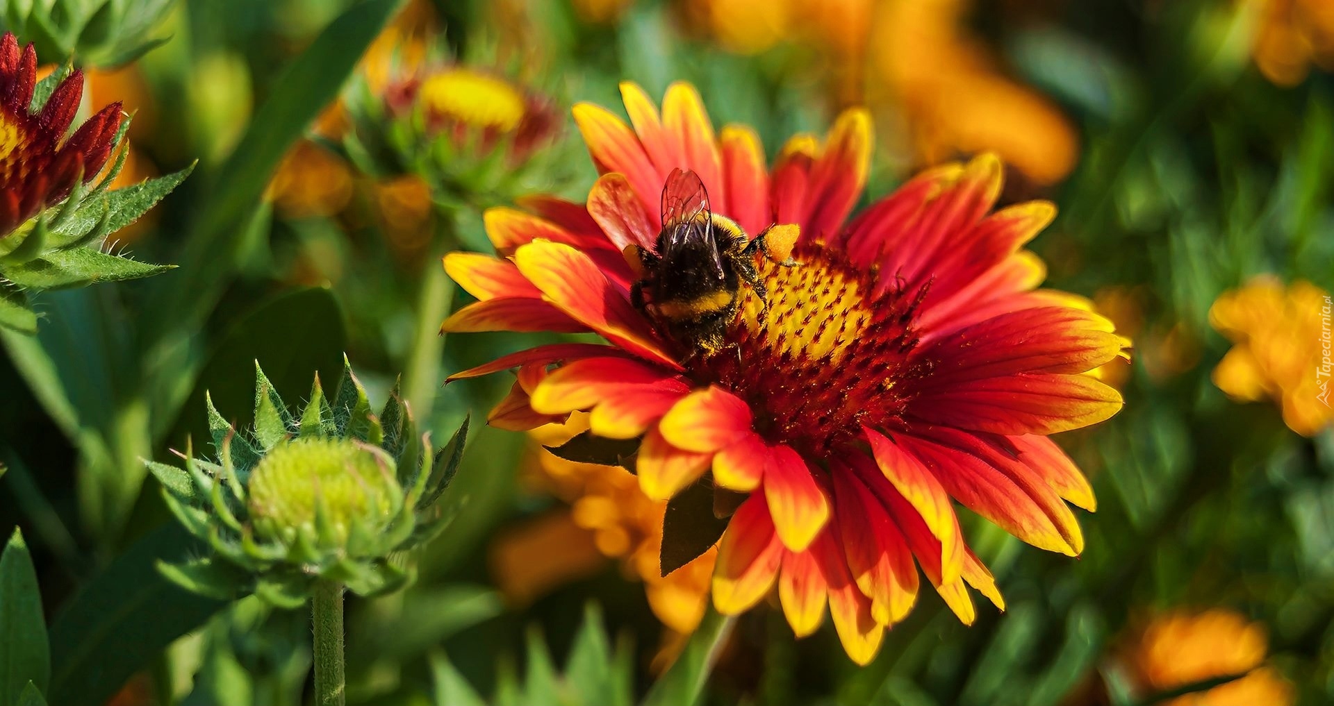 Edytor tapety: Trzmiel, Kolorowy, Kwiat, Gailardia oścista