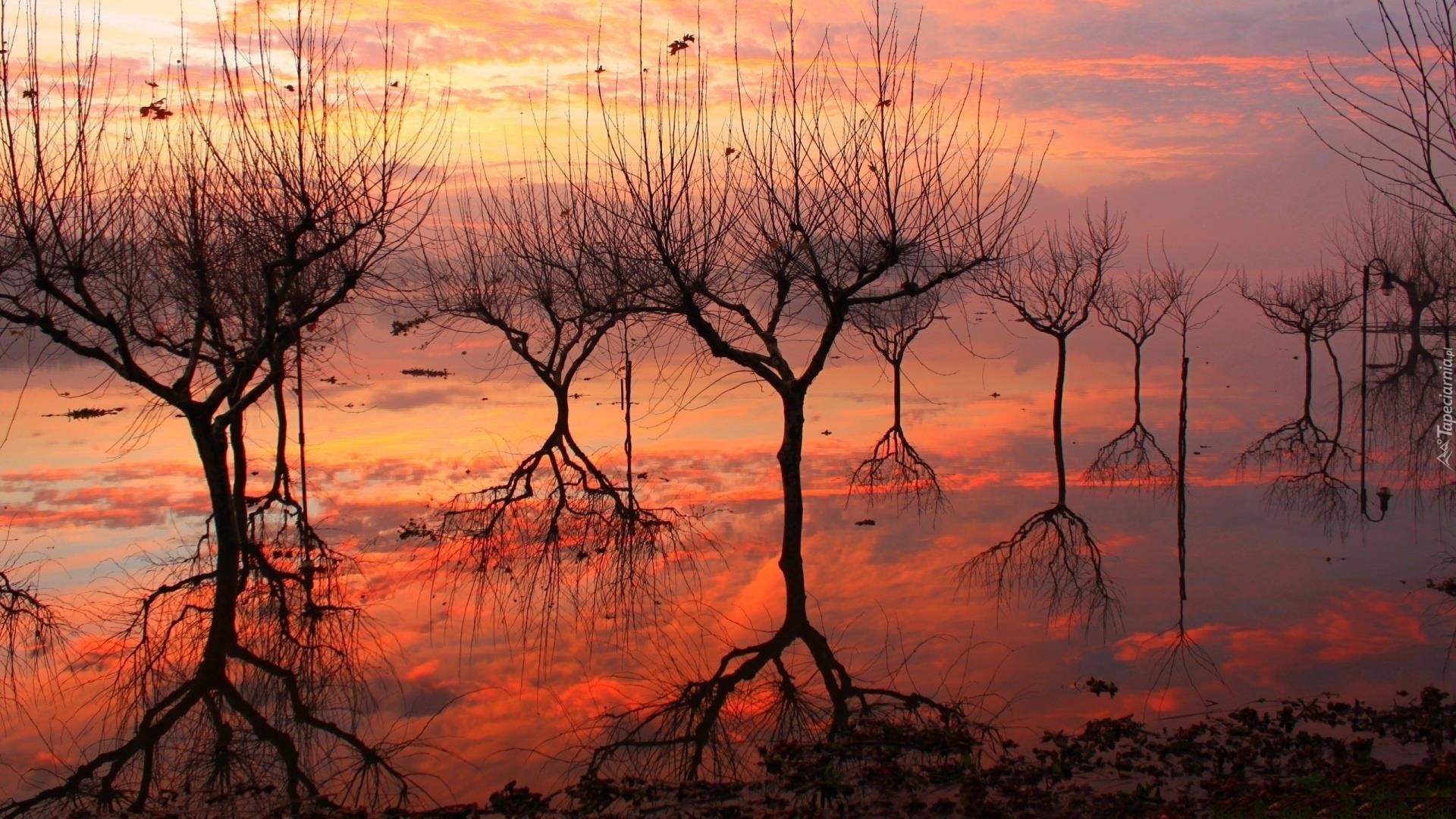 Edytor tapety: Fantasy, Zachód, Słońca, Drzewa, Korzenie