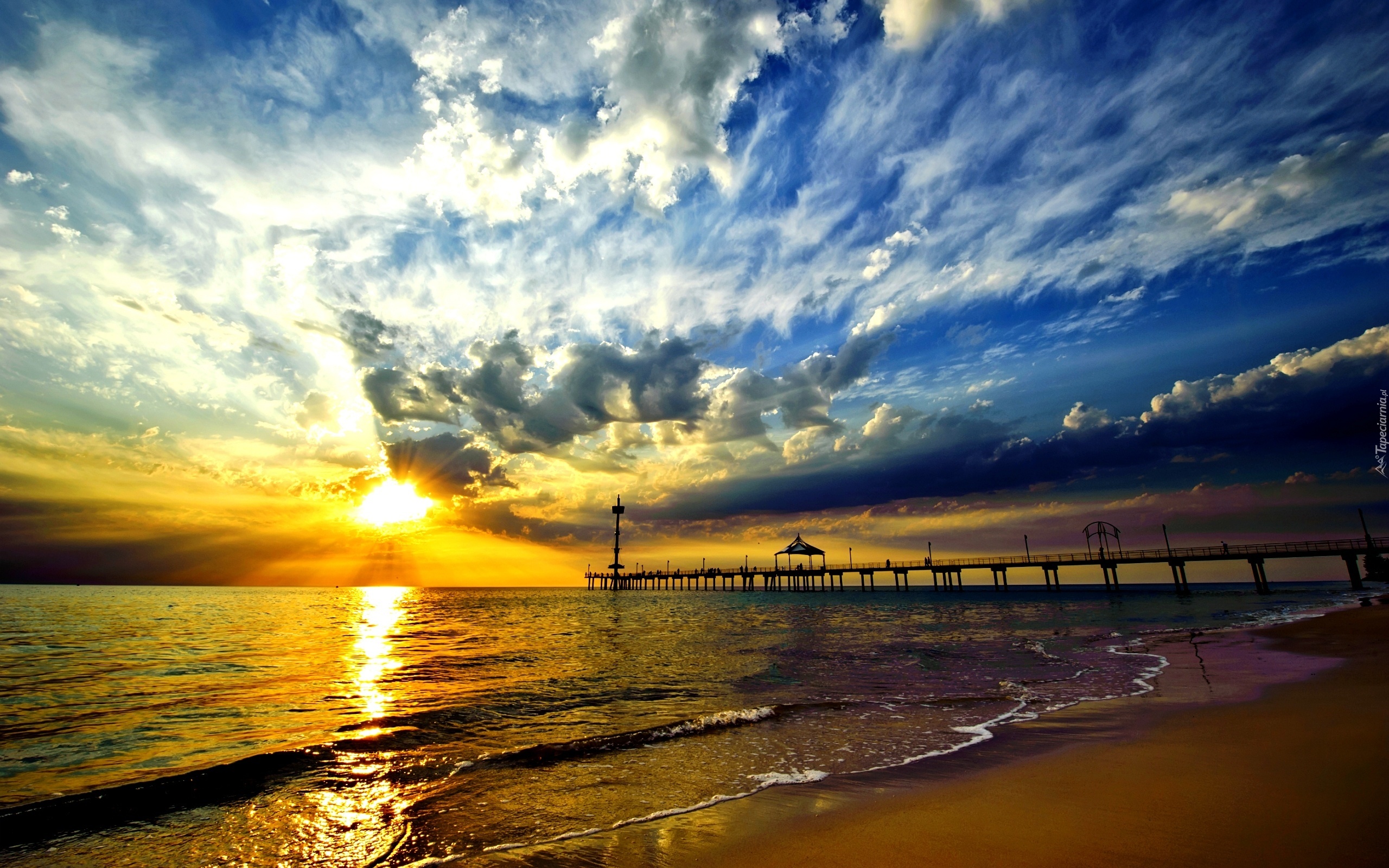 Edytor tapety: Morze, Plaża, Chmury, Pomost