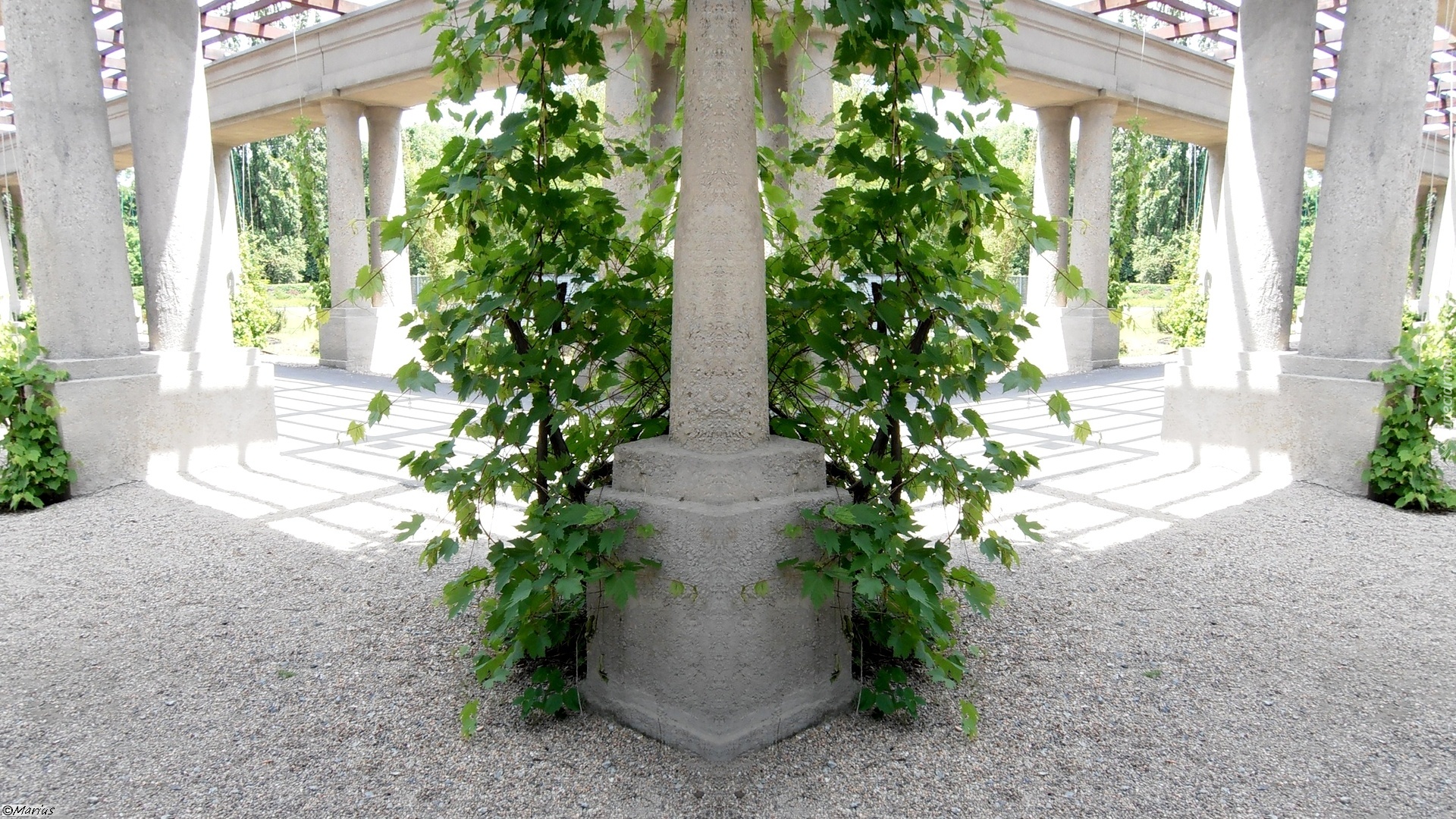 Edytor tapety: Kolumny, Liście, Lustrzane, Odbicie