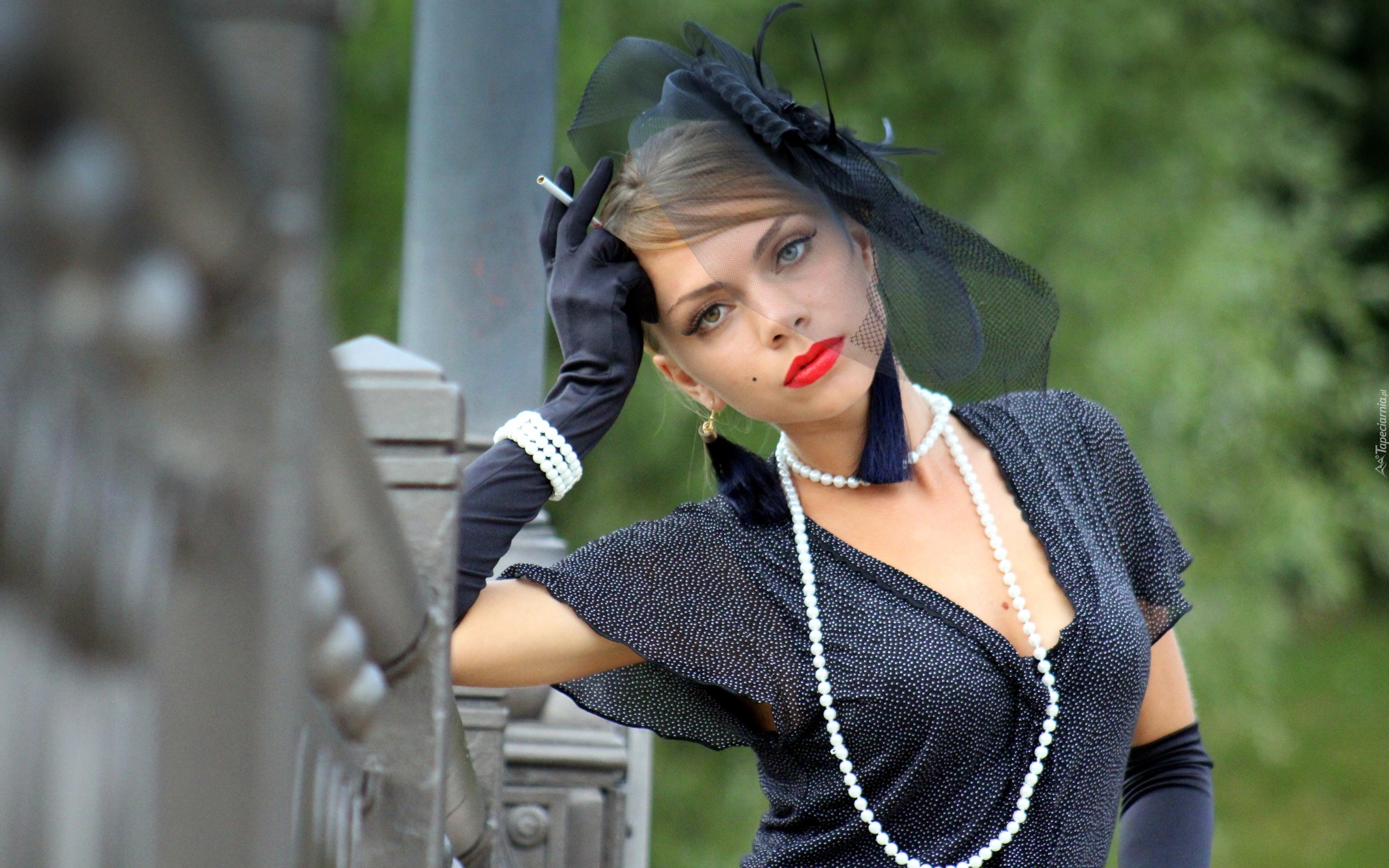 Edytor tapety: Modelka, Kapelusz, Woalka, Biżuteria, Makijaż, Most, Park