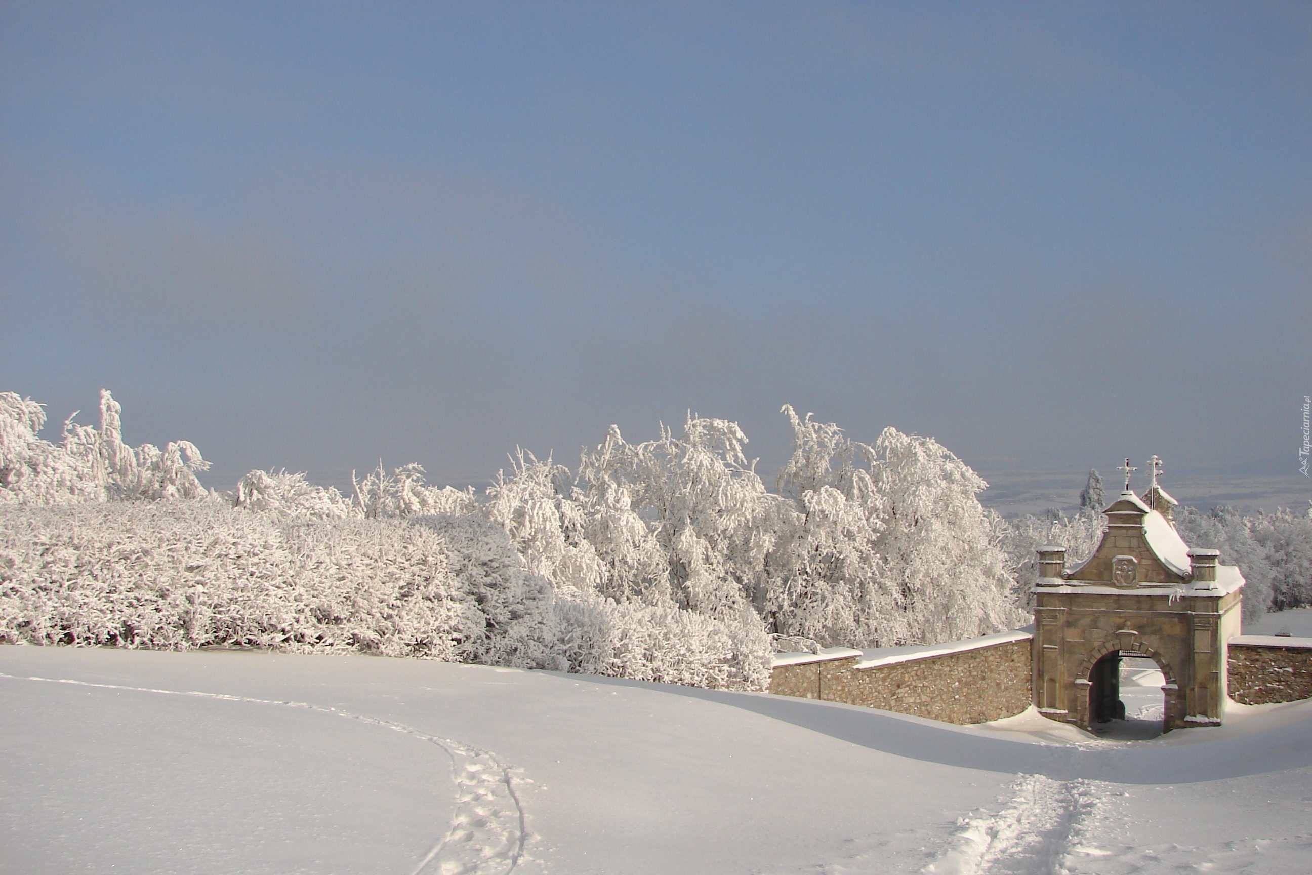 Edytor tapety: Święty, Krzyż, Brama, Do, Klasztoru, Zima