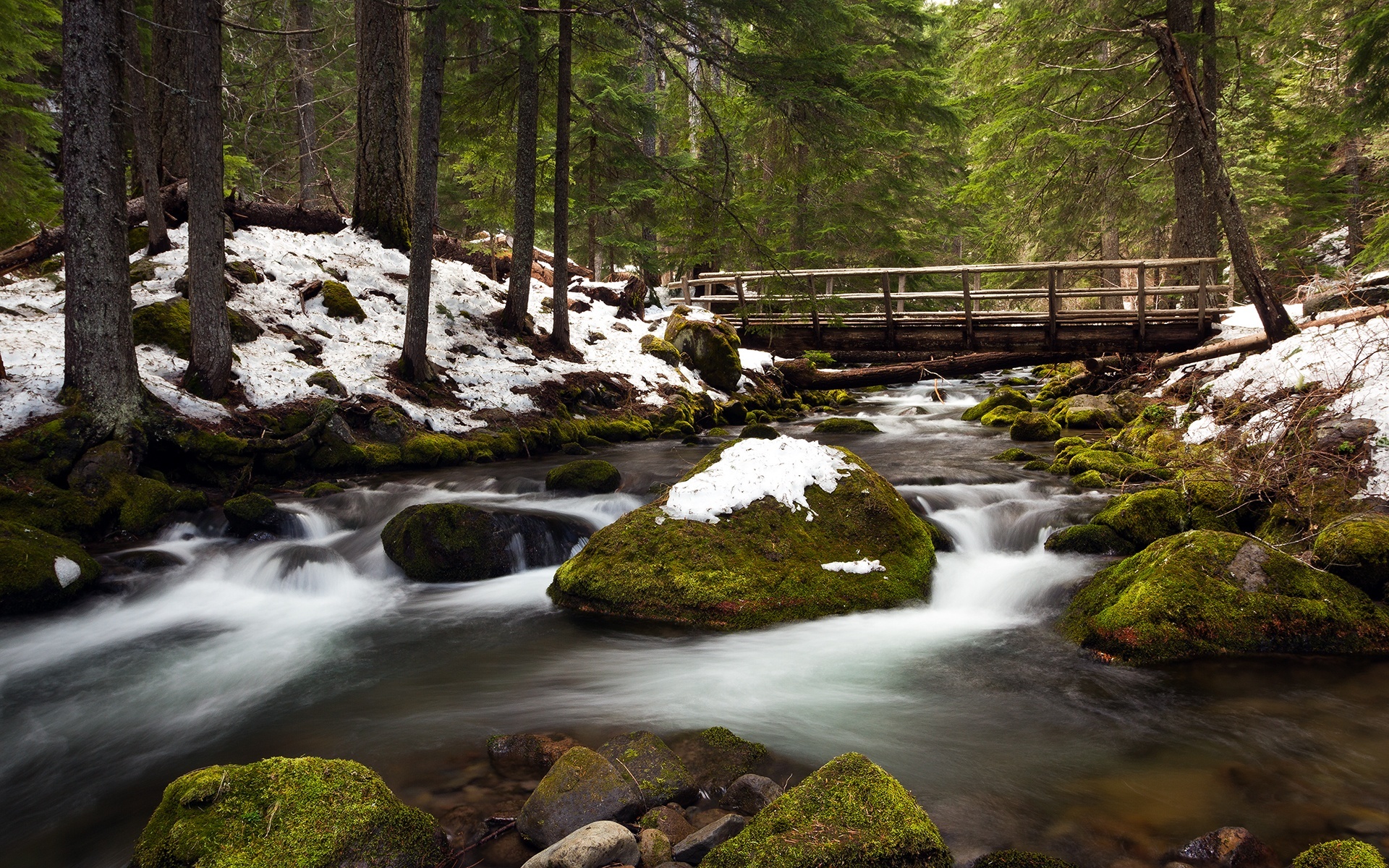 Edytor tapety: Rzeka, Las, Mostek, Kamienie