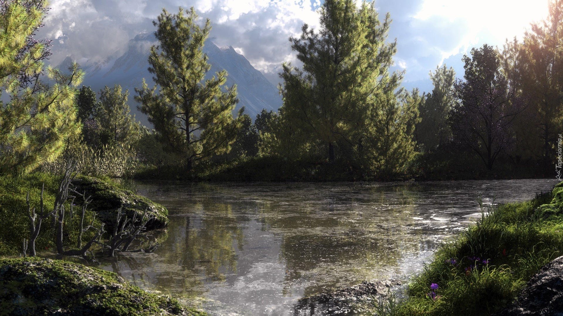 Edytor tapety: Rzeka, Las, Góry