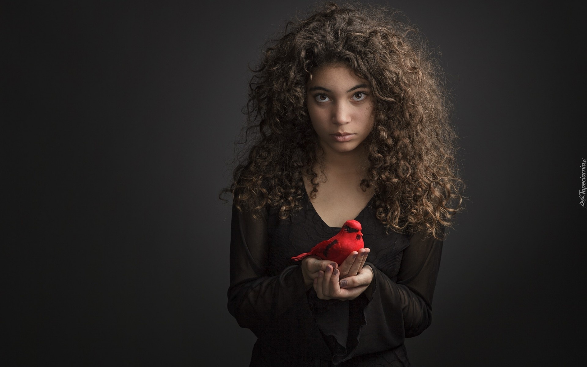 Edytor tapety: Smutna, Dziewczyna, Makijaż, Piękne, Włosy, Ptaszek