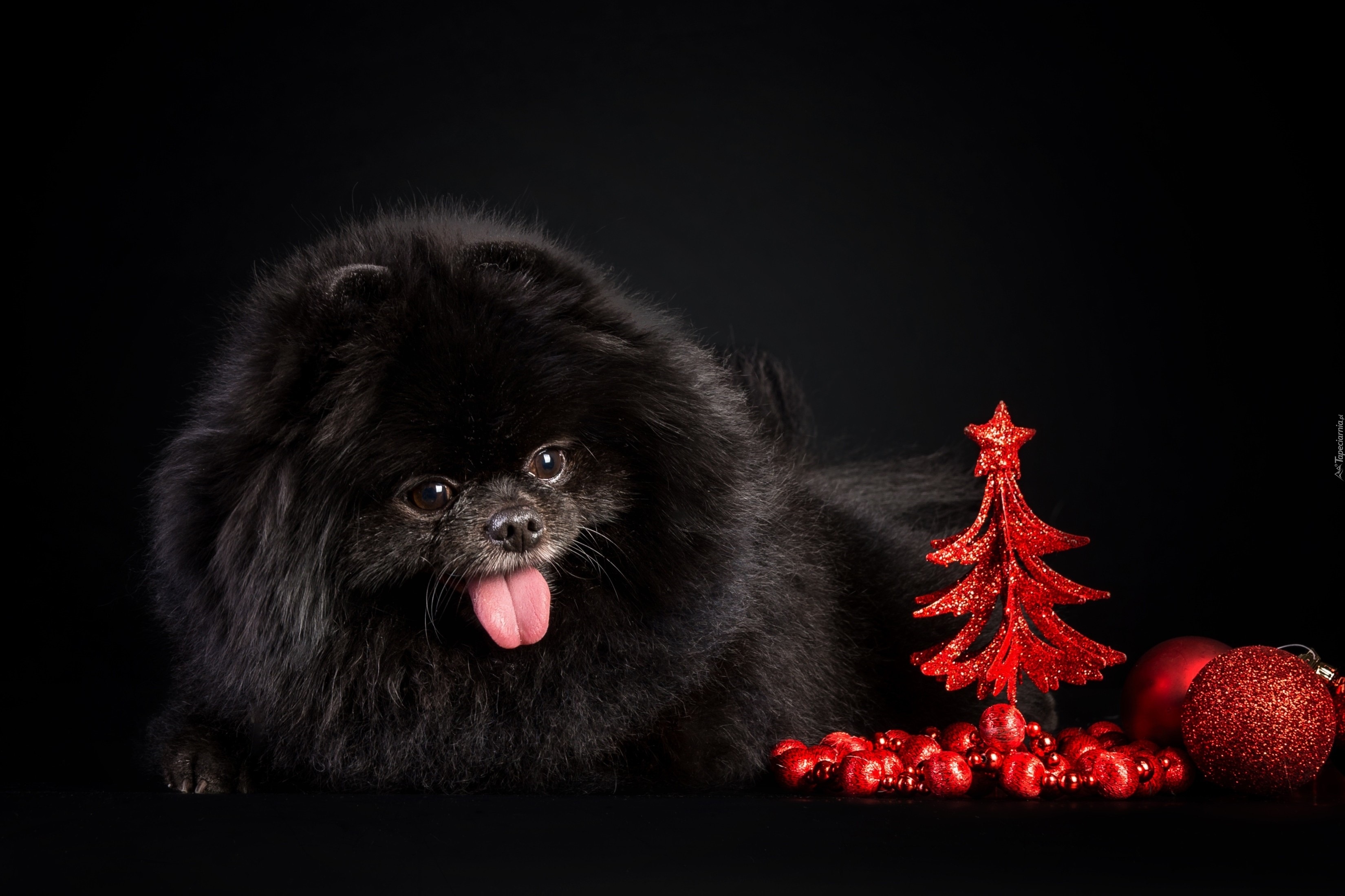 Edytor tapety: Czarny, Piesek, Język, Choinka, Bombki