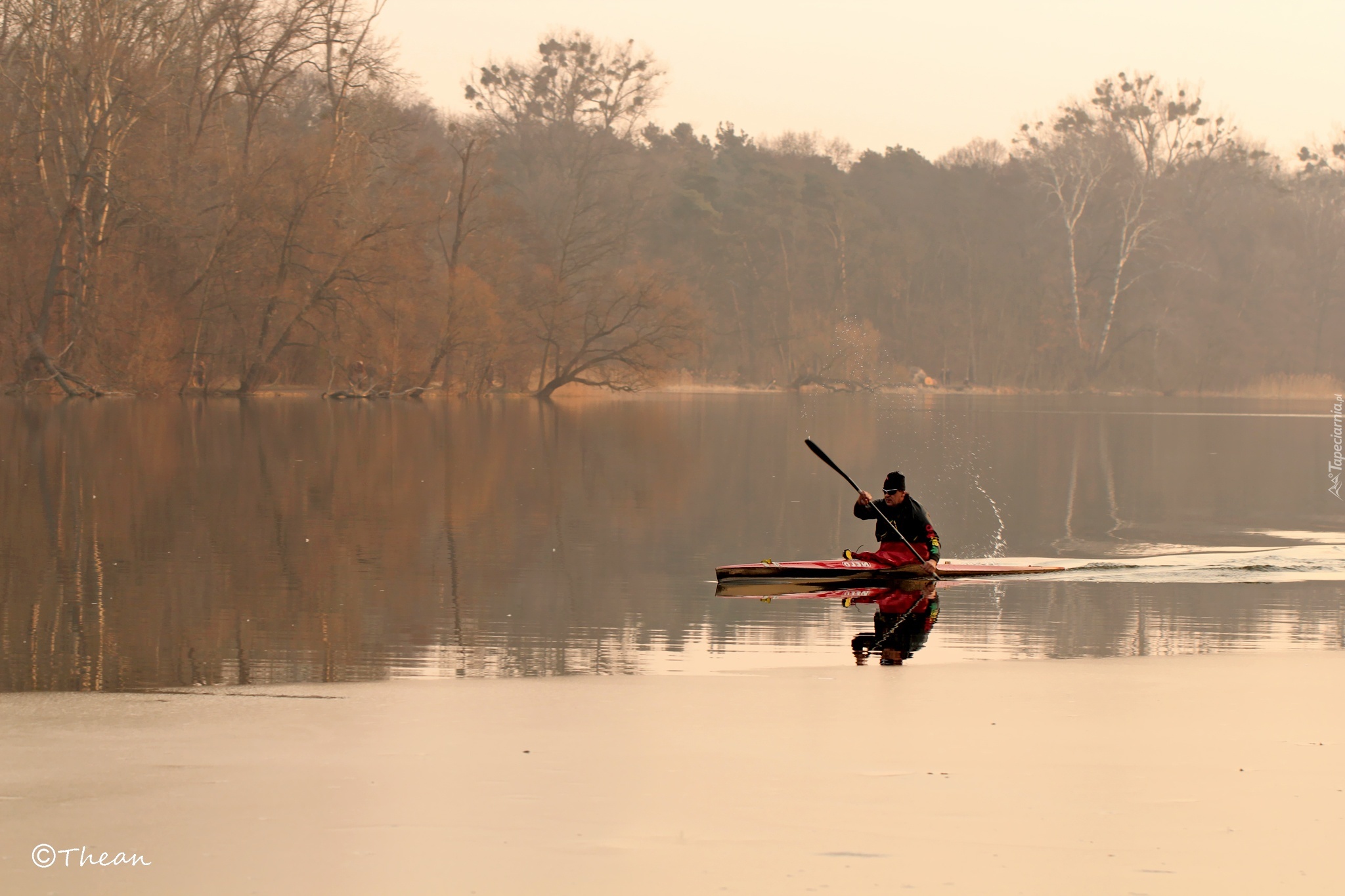 Edytor tapety: Kajakarz, Jezioro, Drzewa
