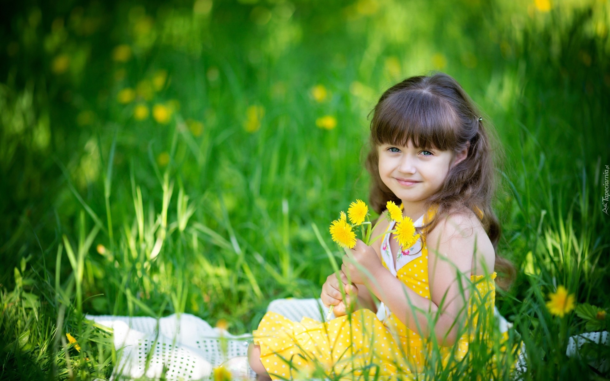 Edytor tapety: Uśmiechnięta, Dziewczynka, Kwiatuszki, Łąka