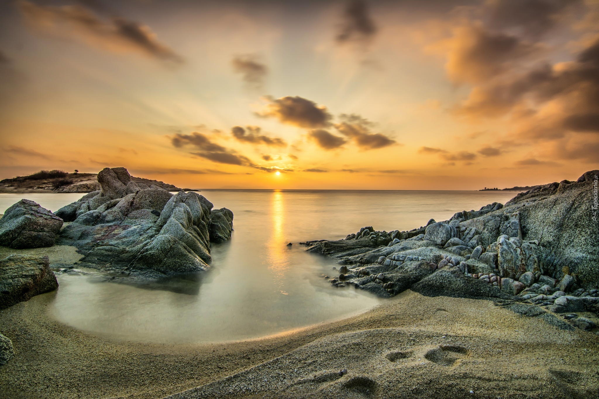 Edytor tapety: Zachód, Słońca, Morze, Skały