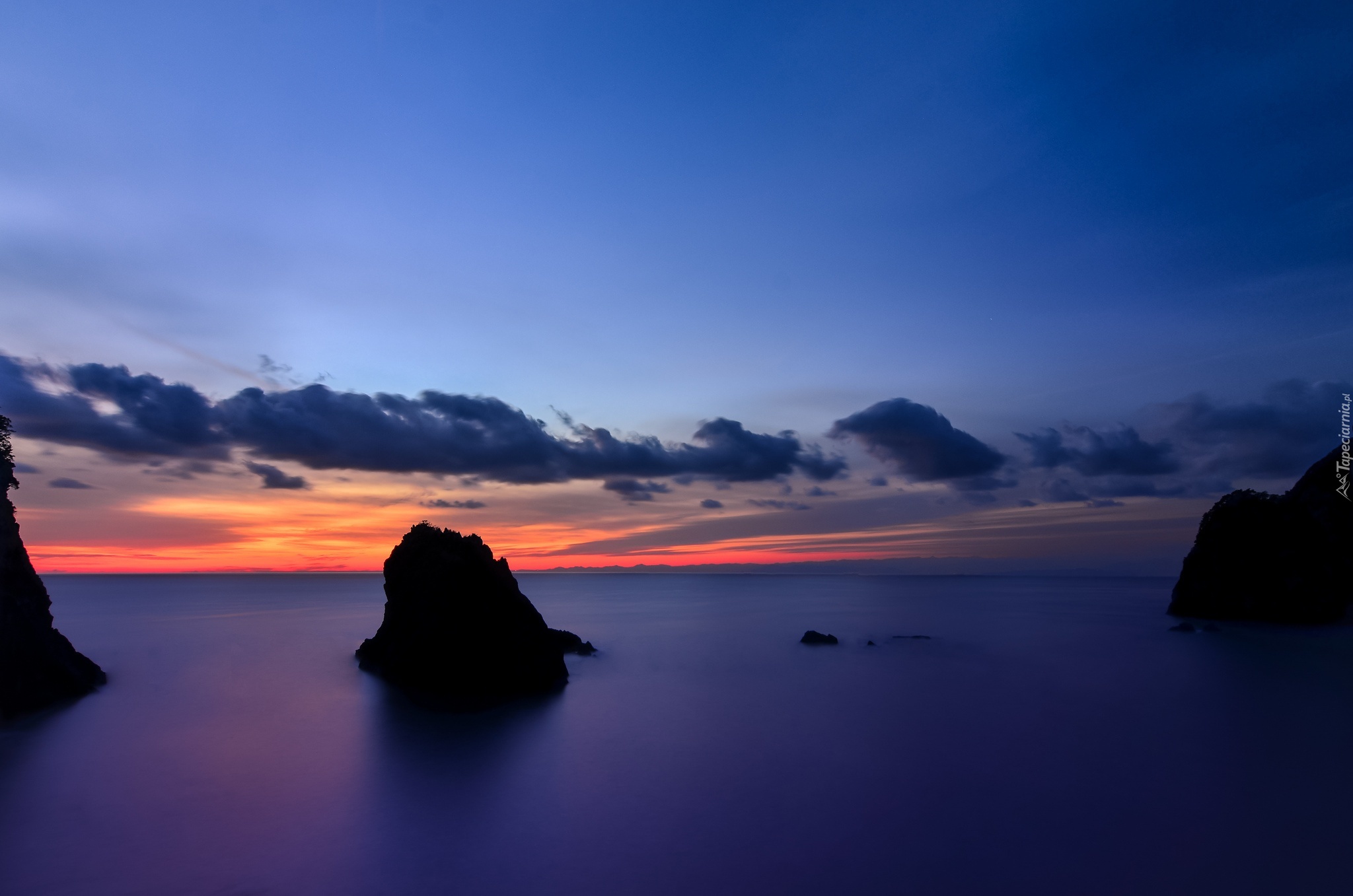 Edytor tapety: Zmierzch, Chmury, Morze, Skały