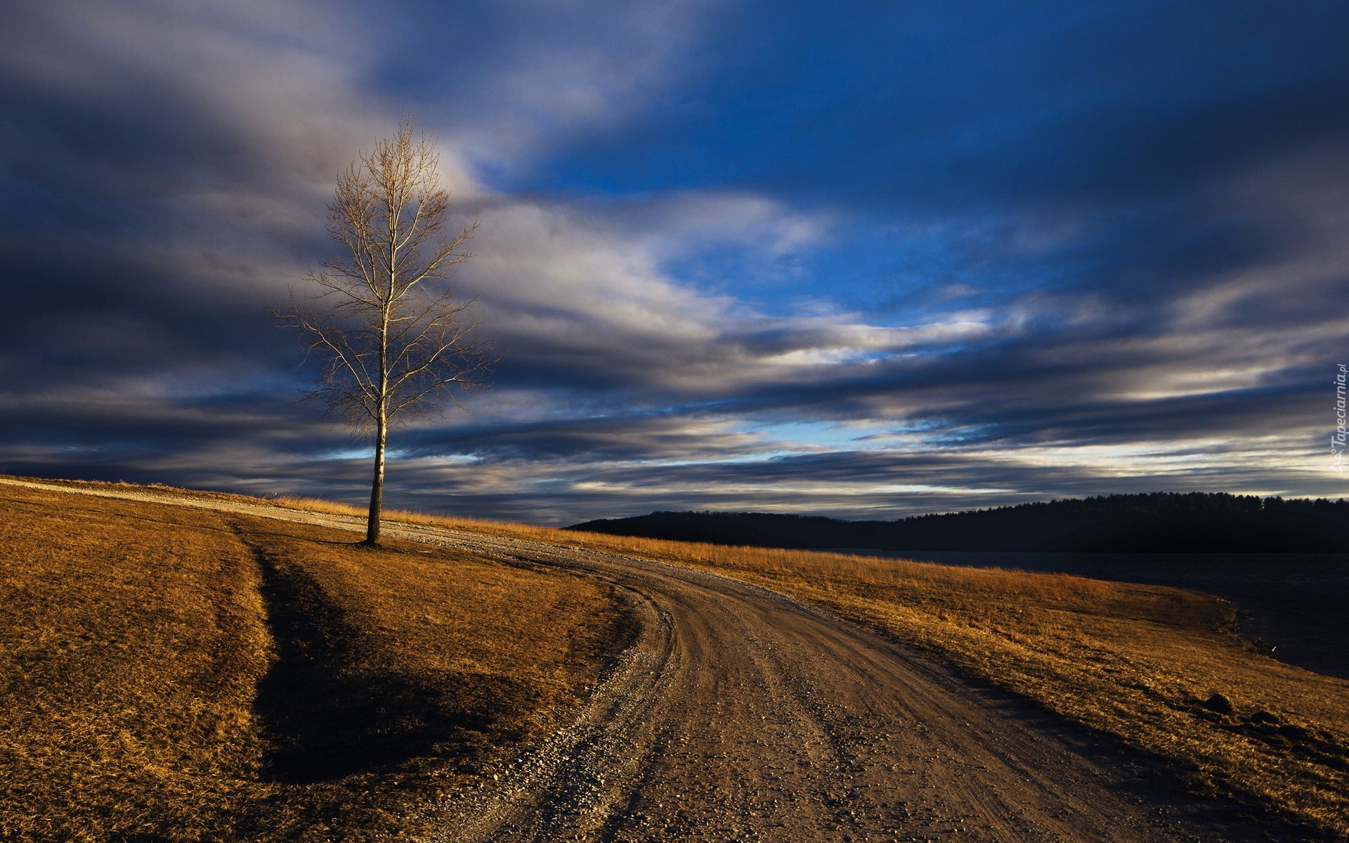 Edytor tapety: Droga, Łąka, Drzewo, Chmury