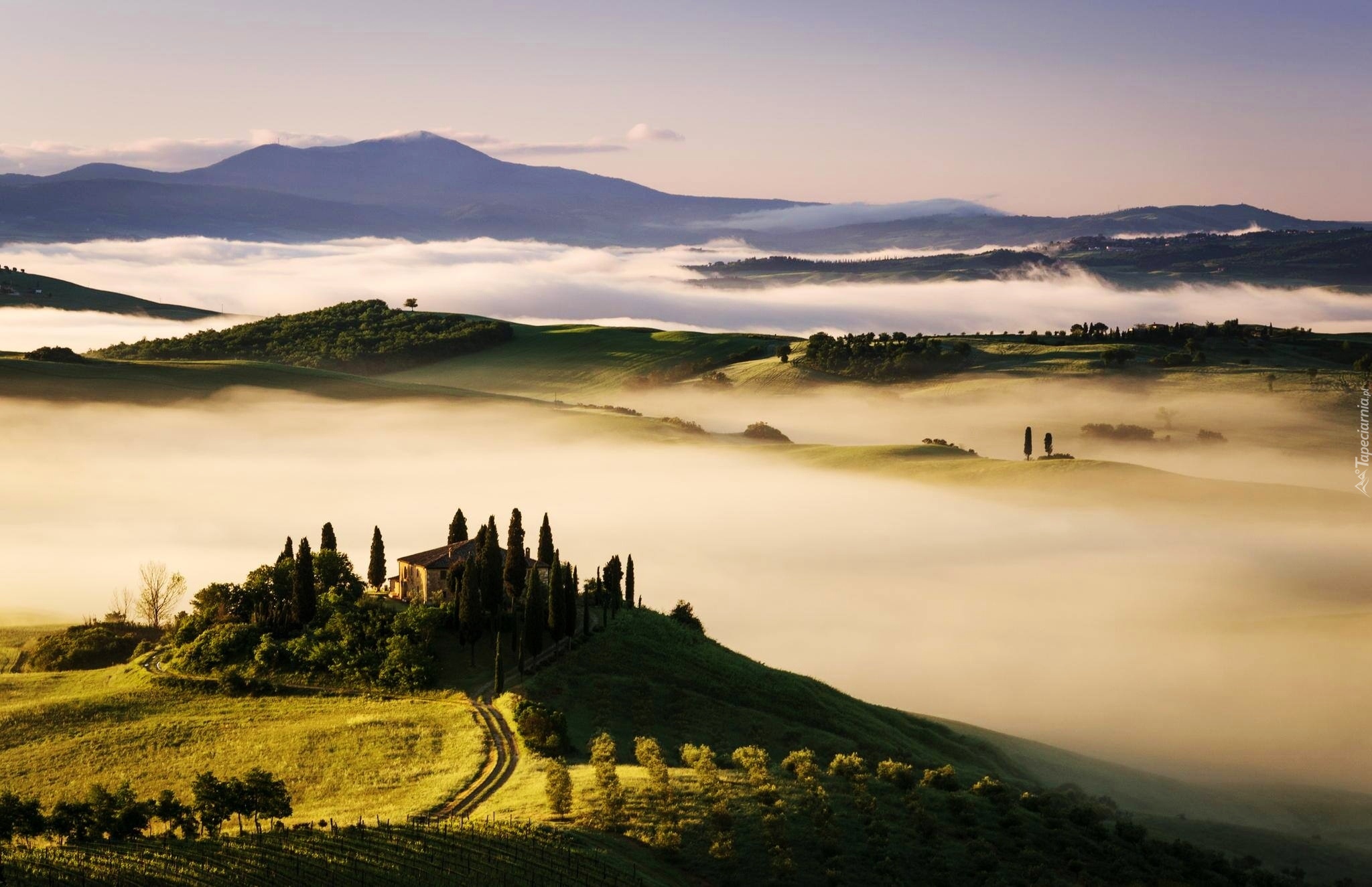 Edytor tapety: Góry, Mgła, Dom