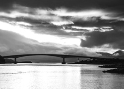 Edytor tapety: Rzeka, Most, Góry, Domy, Mgła, Chmury