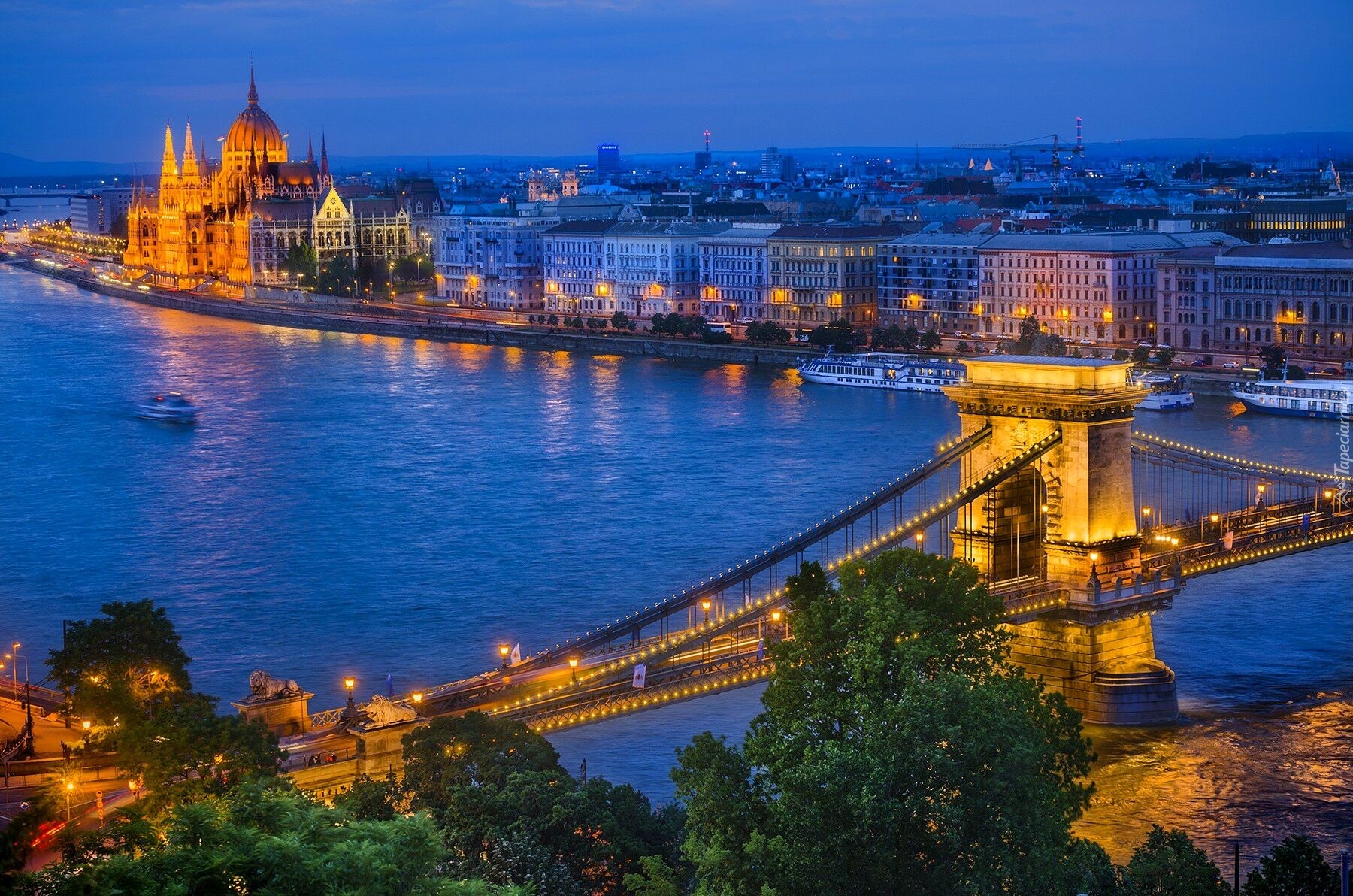Edytor tapety: Most, Rzeka, Statki, Budapeszt, Panorama, Miasta, Zmrok