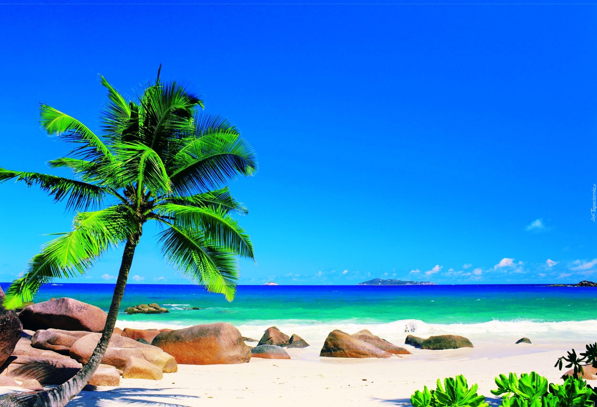 Edytor tapety: Morze, Kamienie, Palma, Karaiby