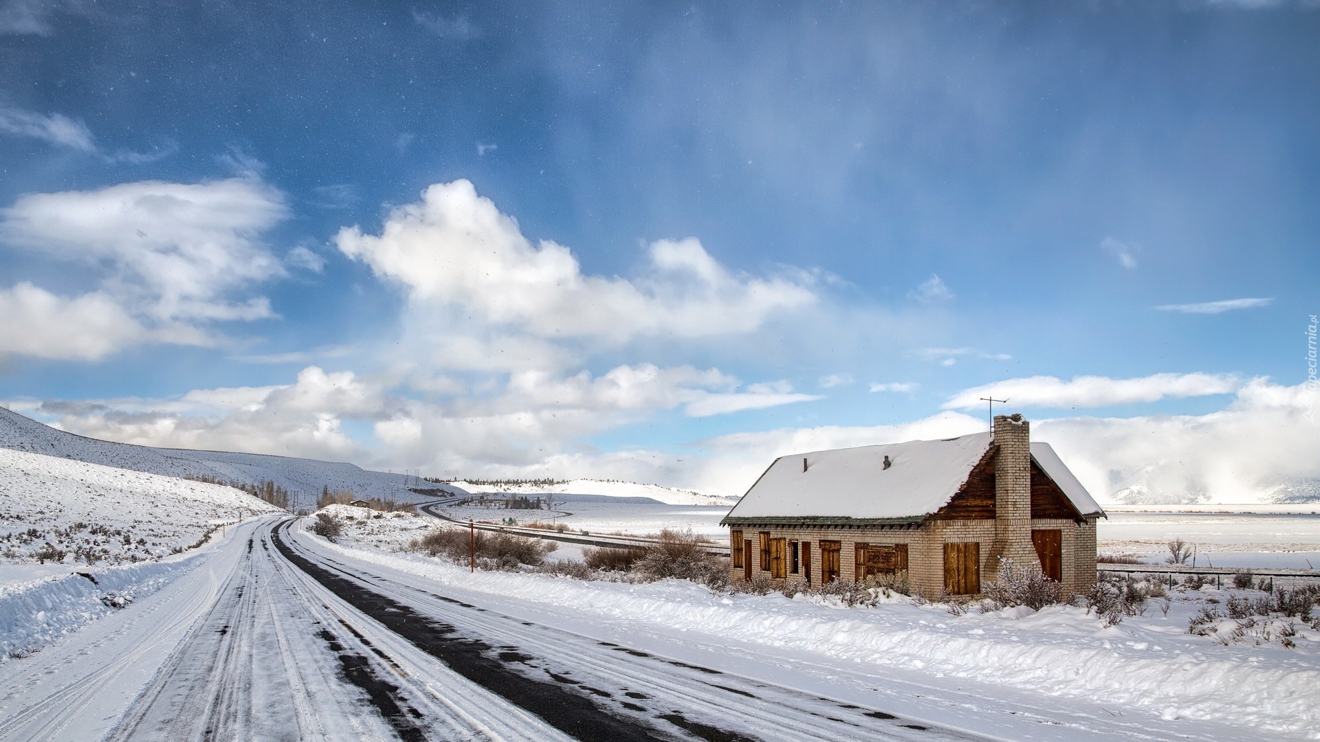 Edytor tapety: Droga, Śnieg, Dom
