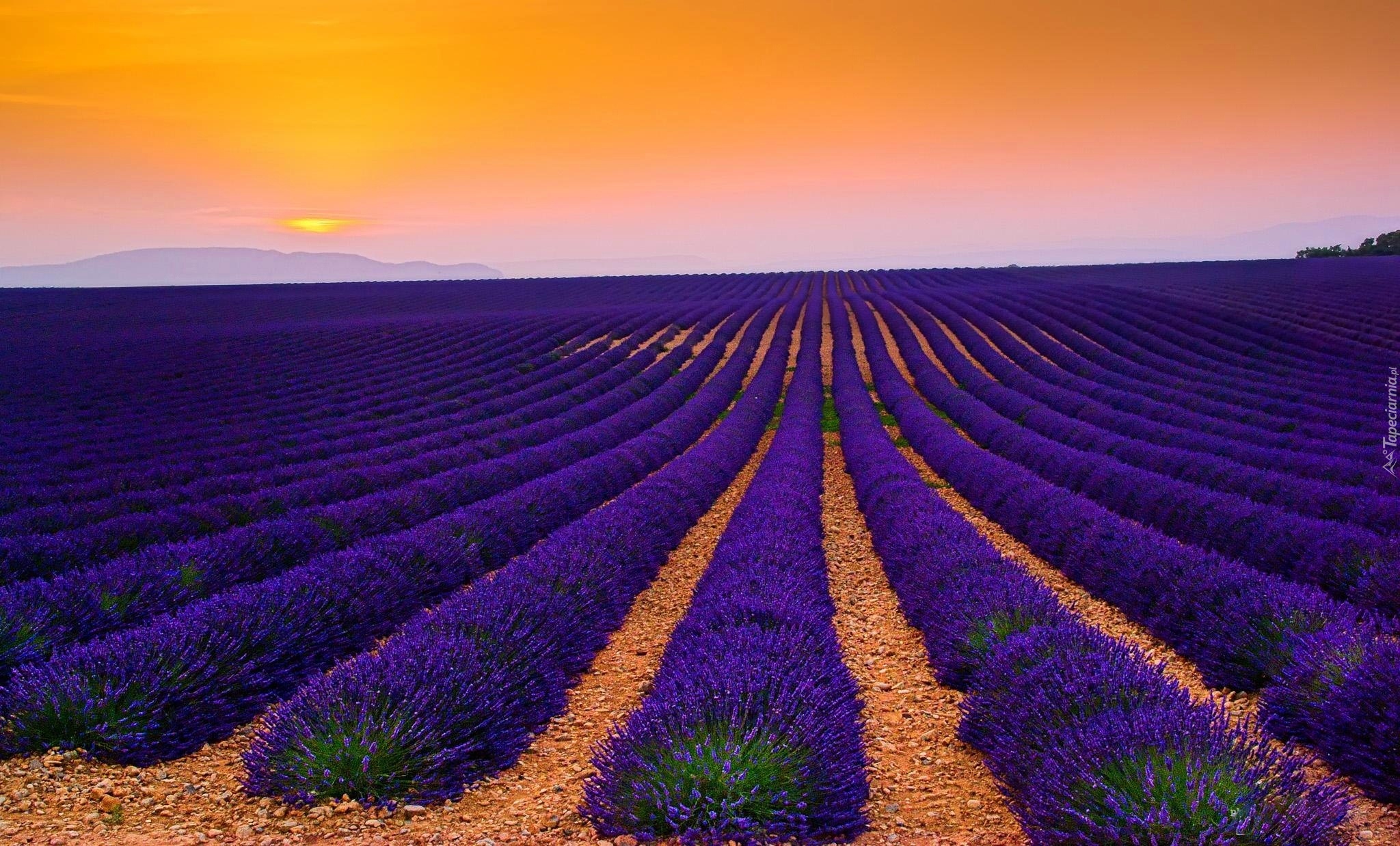 Edytor tapety: Zachód, Słońca, Lawenda