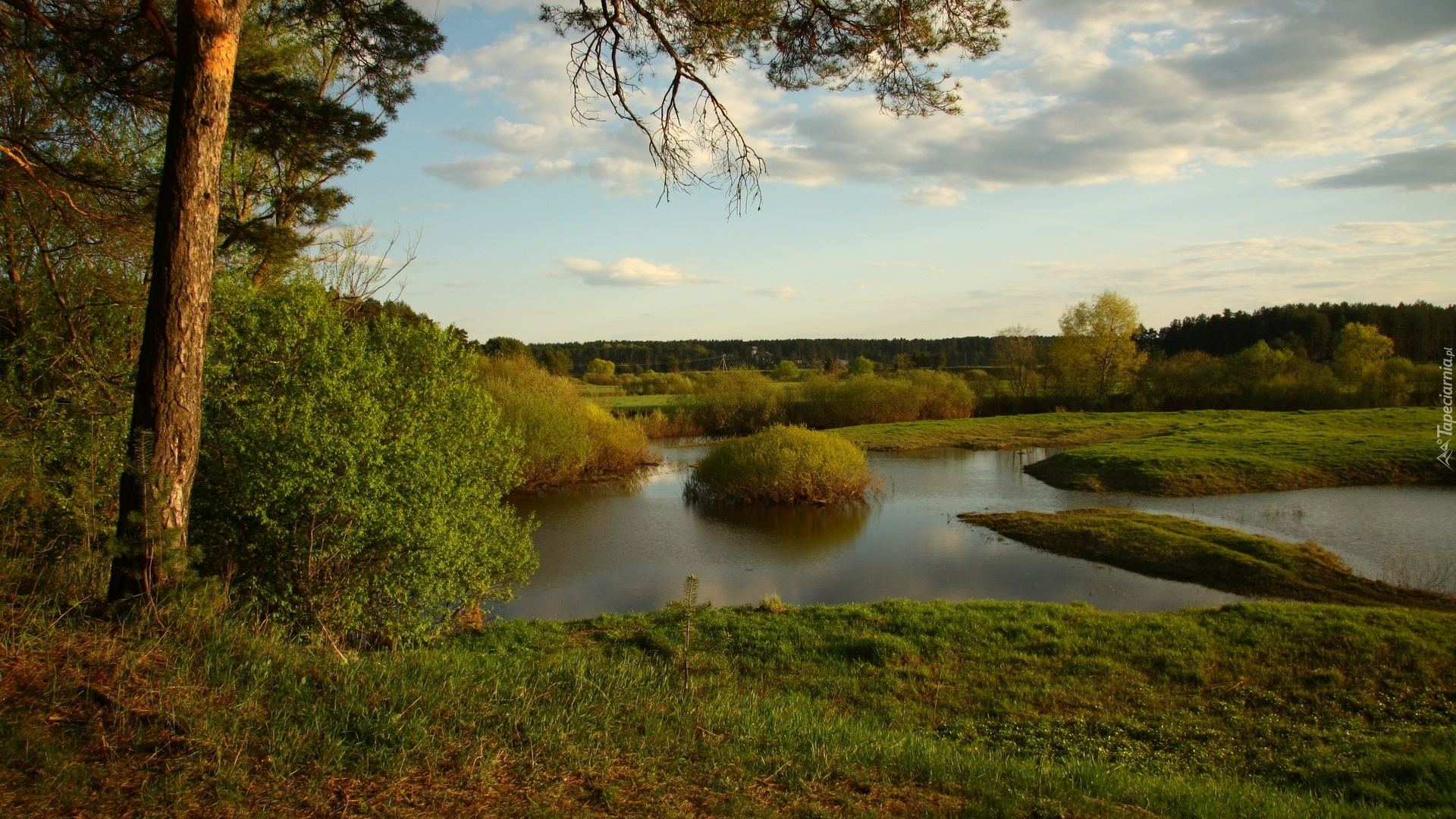 Edytor tapety: Rzeka, Drzewa, Niebo